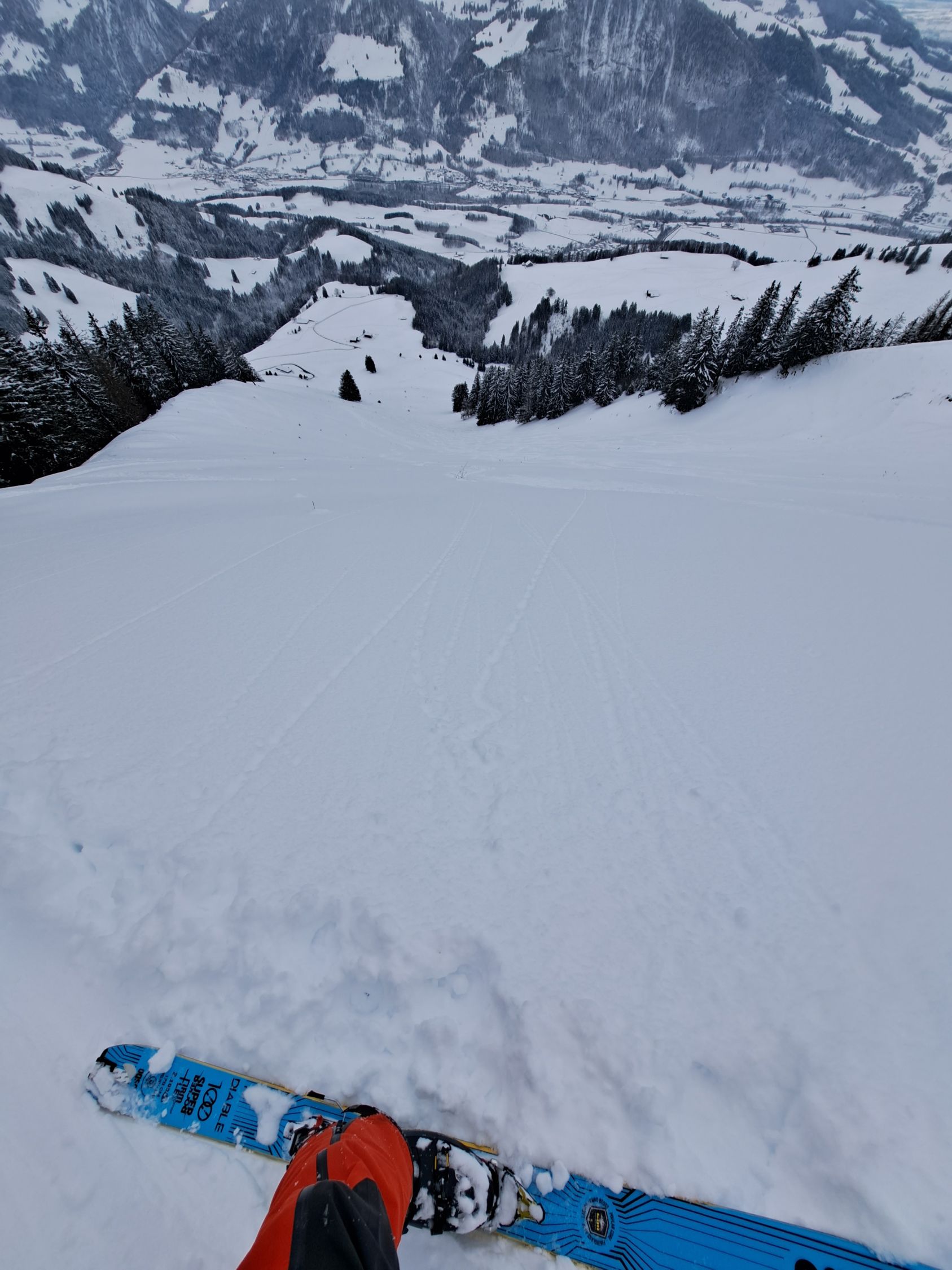 Ab da gut eingeschneit mit 30-40 cm. schönem Pulver,oben raus mit Unterlage.