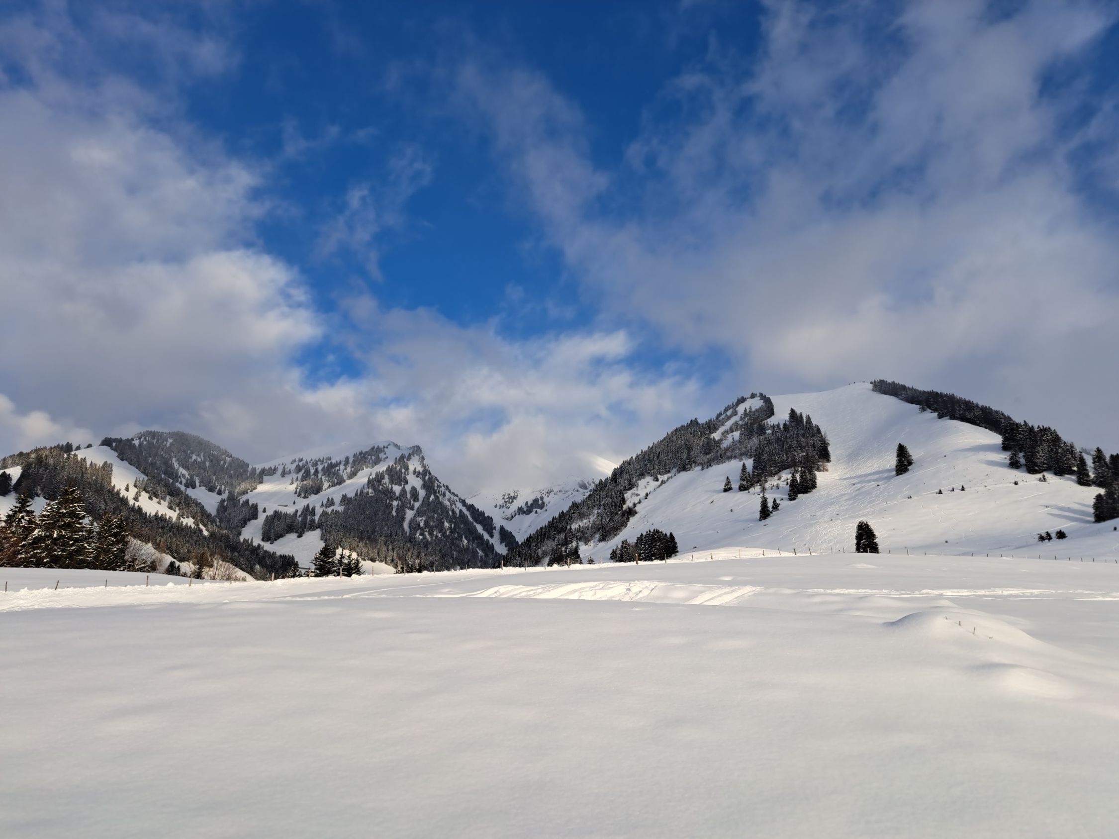 Start erst am Nami.Da gerade stark geholzt wird ist Strasse bis Abzweiger 'Bonavaux'(1000m.) fast Schwarzgeräumt(PW nur in den 1-2 gross geräumten Buchten parken,da Strasse unter der Woche eigentlich gesperrt ist..So wird man geduldet und nicht gebüsst).Abfahrt ab da bis Grandvillard im Moment nicht sehr lohend.