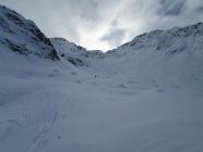 Ab Startpunkt genügend Schnee. Die Menge nimmt mit jedem Höhenmeter zu. Aufstiegsspur tiptop.