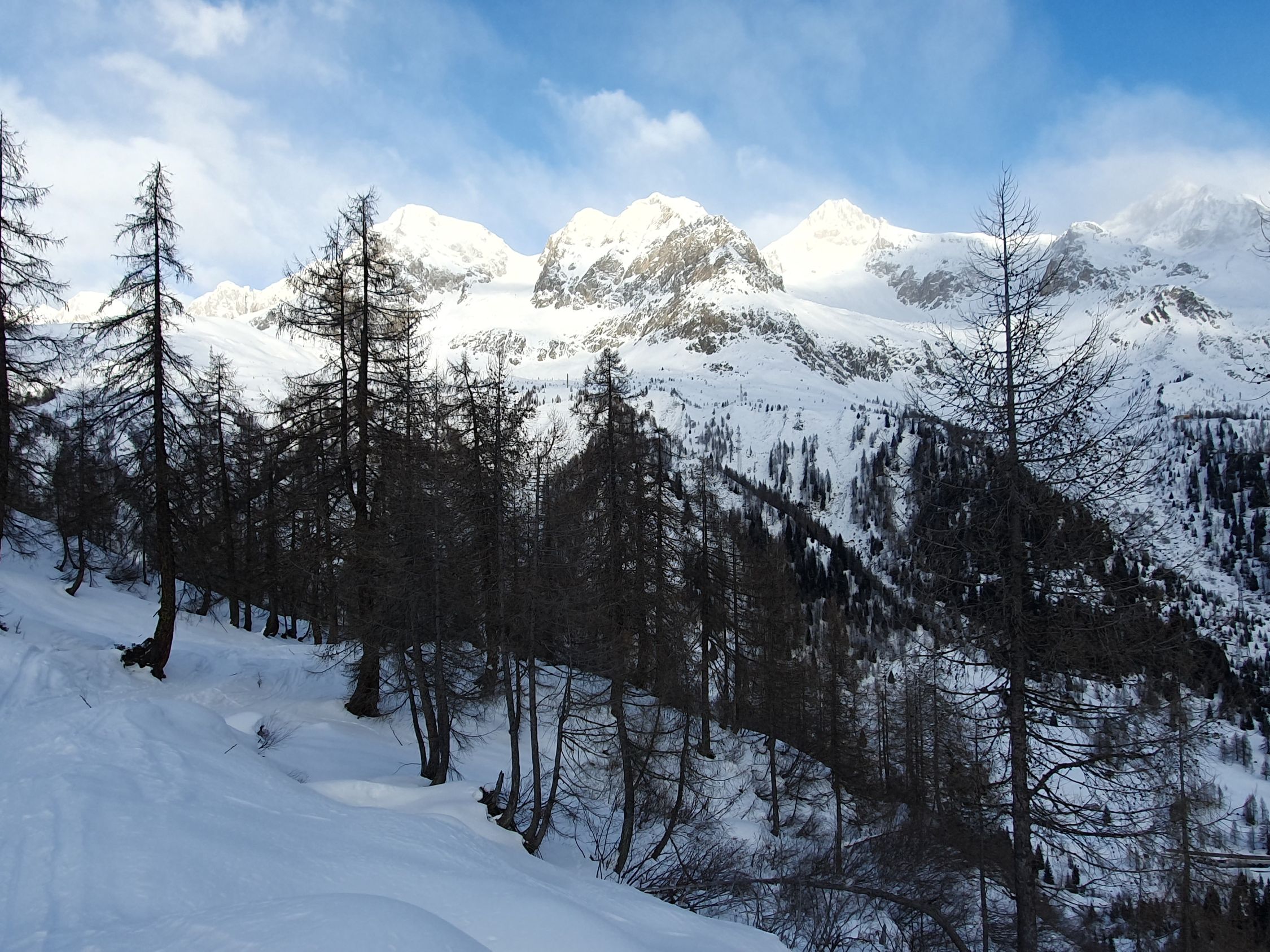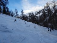 Abfahrt zu unterst durch den Wald über die Aufstiegsspur etwas mühsam, da eng.