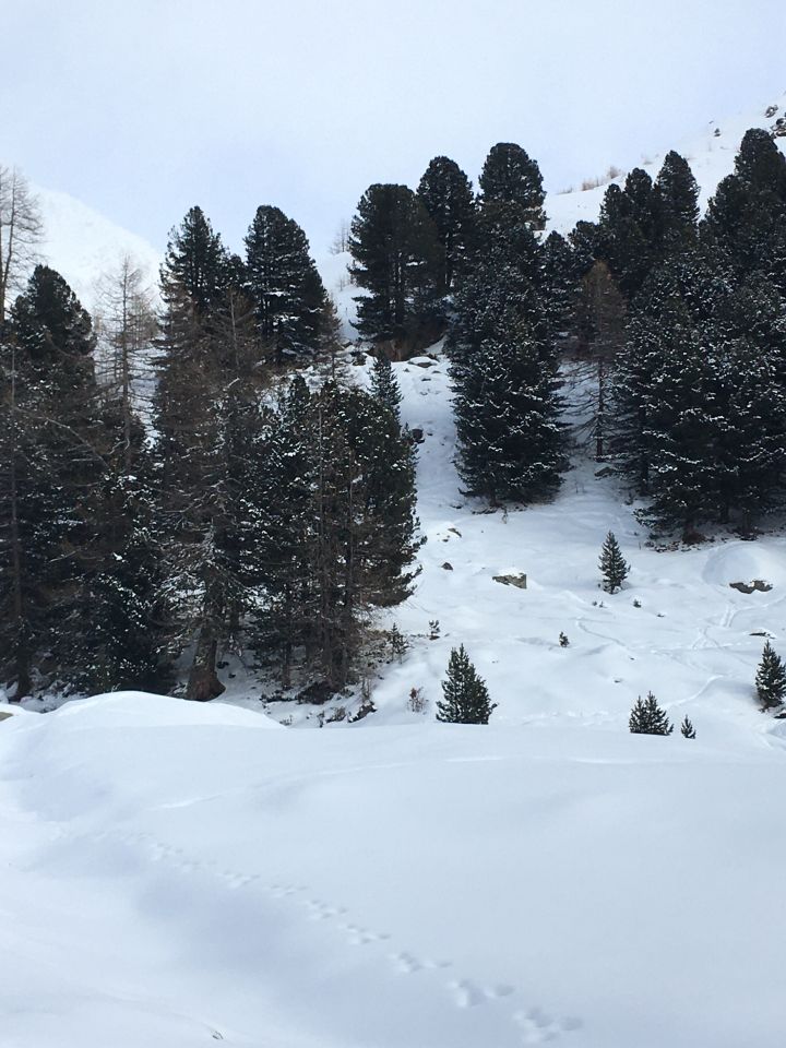 Schön viel Schnee in der Nordostflanke des Rückens! Richtig Winter! Start kleiner Parkplatz unterhalb Friedhof 1867 m um 8.45 Uhr, minus 13 Grad, leicht bewölkt, windstill. Gute Spur vorhanden bis Klettersteig Alp Languard, kurz danach bin ich runter zum Bach, etwas heikle Überquerung. Nun sehr viel Schnee in der Nordostflanke, teilweise 100 cm, und vielfach ohne Unterlage. Spuren war angesagt. Auf dem Rücken war es dann wesentlich einfacher eine Spur anzulegen, gute Unterlage und 10 bis 20 cm Neuschnee. Auf dem Rücken bis zur Hütte dann angenehmer Sonnenschein und nicht mehr ganz so kalt. Abfahrt zuerst auf dem Rücken und dann die Nordostflanke runter. Habe keine gute Variante erwischt, zuerst zu steil und nachher Traverse. War gar nicht so einfach in diesem Tiefschnee zu fahren, teilweise schlechte Unterlage aber mega viel Schnee. Wer hätte das gedacht? Nach der Alp dann etwas verfahren aber sehr guter Pulverschnee.