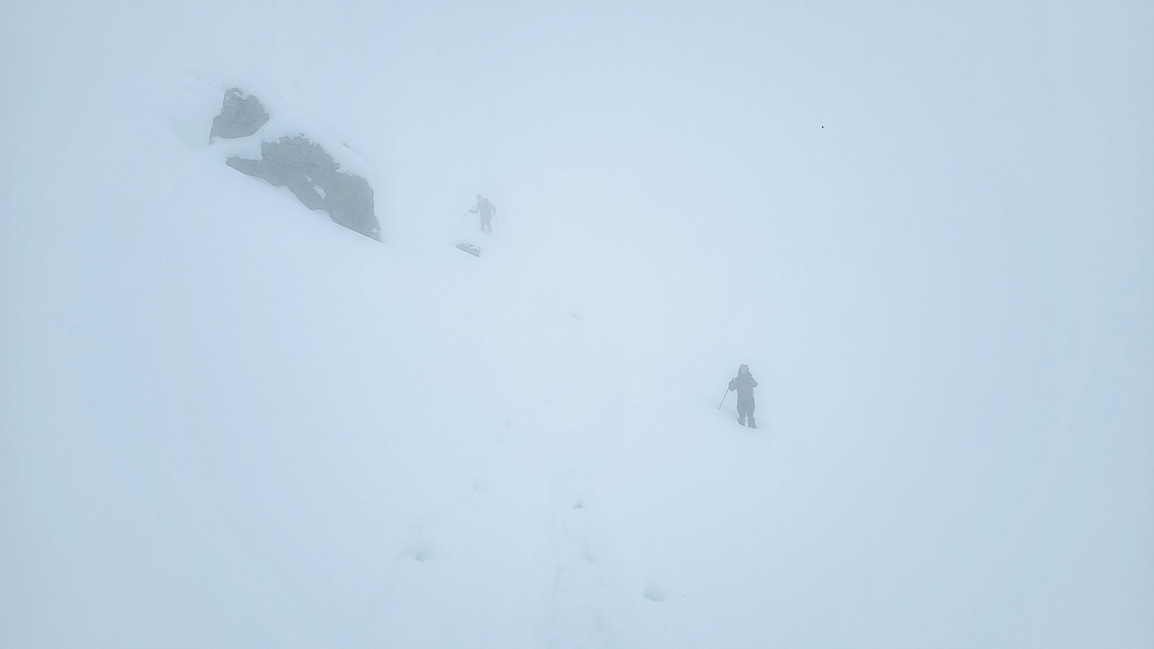 Start in der Weglosen mit Ziel Twäriberglücke/Chläbdächer. Forststrasse Richtung Druesberghütte gut eingeschneit und gut begangen, wir sind bei P1349 auf angelegter Spur richtung Steinhüttli abgebogen. Beim Chalberalpeli auf 1900müM in einen totalen Whiteout gekommen und anschliessend quasi Blind einer Aufstiegsspur zurück zur Druesberhütte entlanggerutscht.