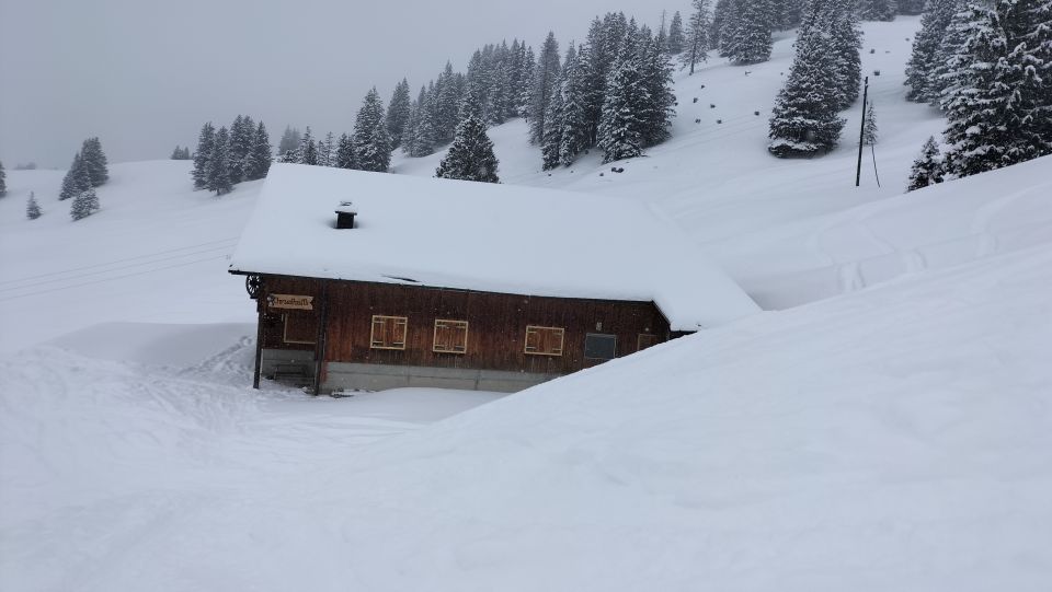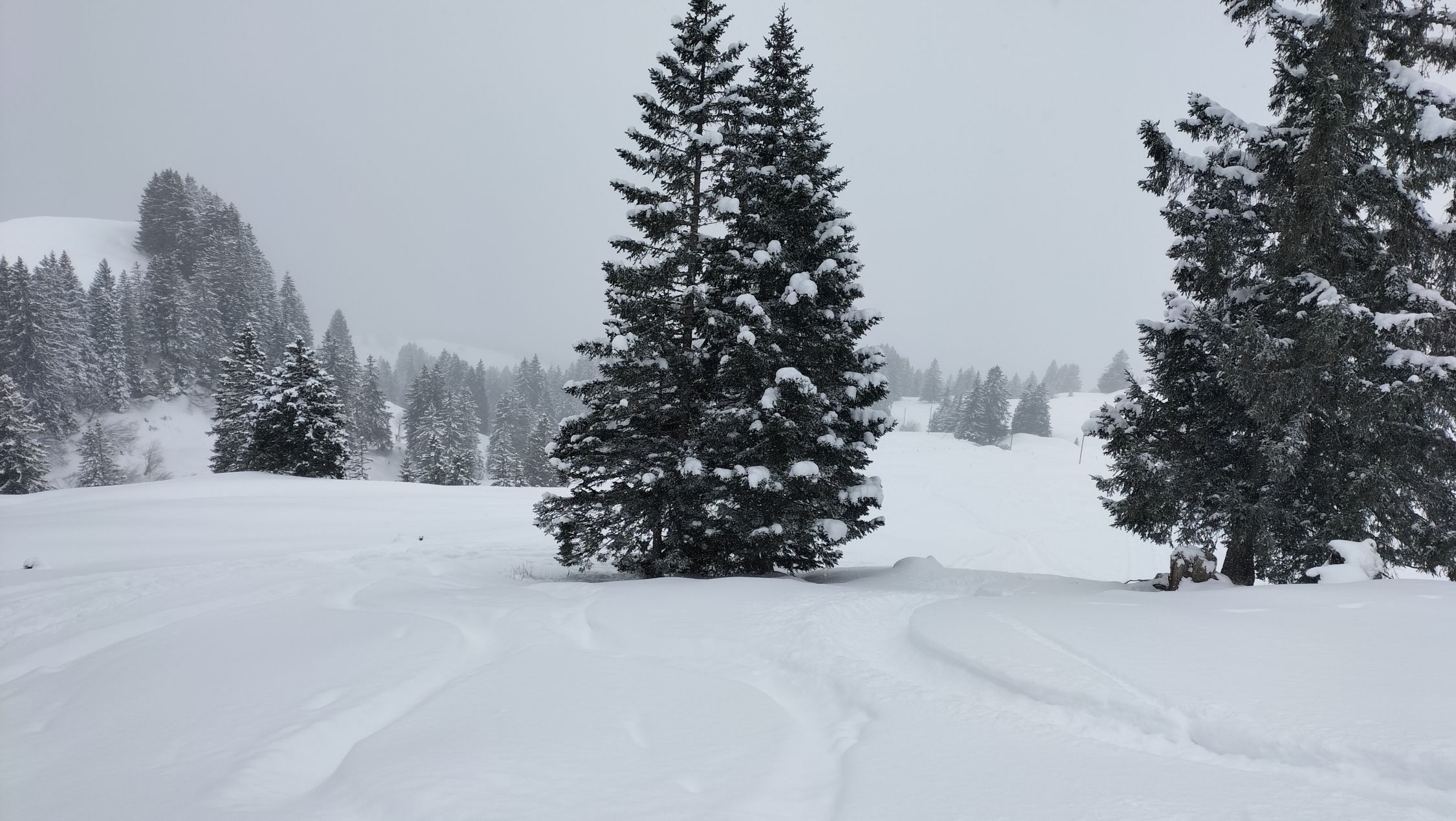 Start der Tour am 9.15 Uhr in Illgau, leichter Schneefall auf der ganzen Tour, ca. 30 cm Pulverschnee leider unten keine Unterlage, die letzten Meter dann noch recht windig.