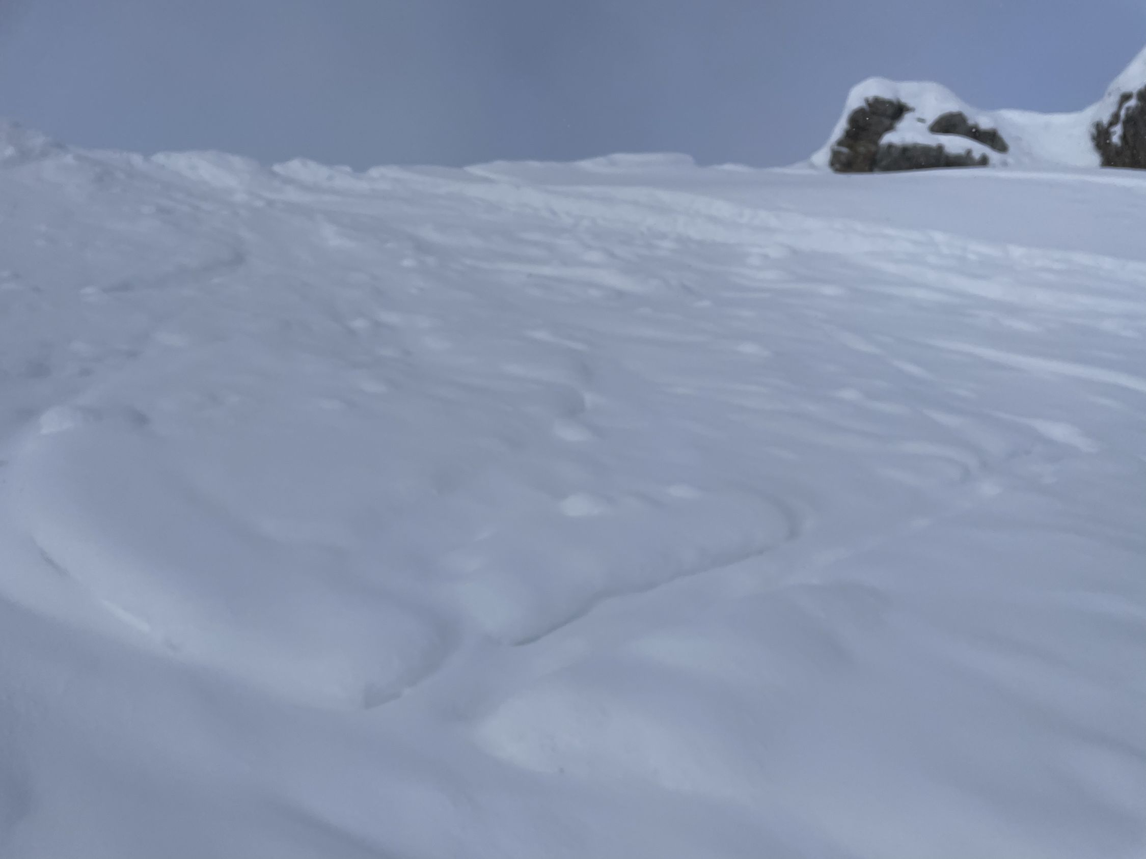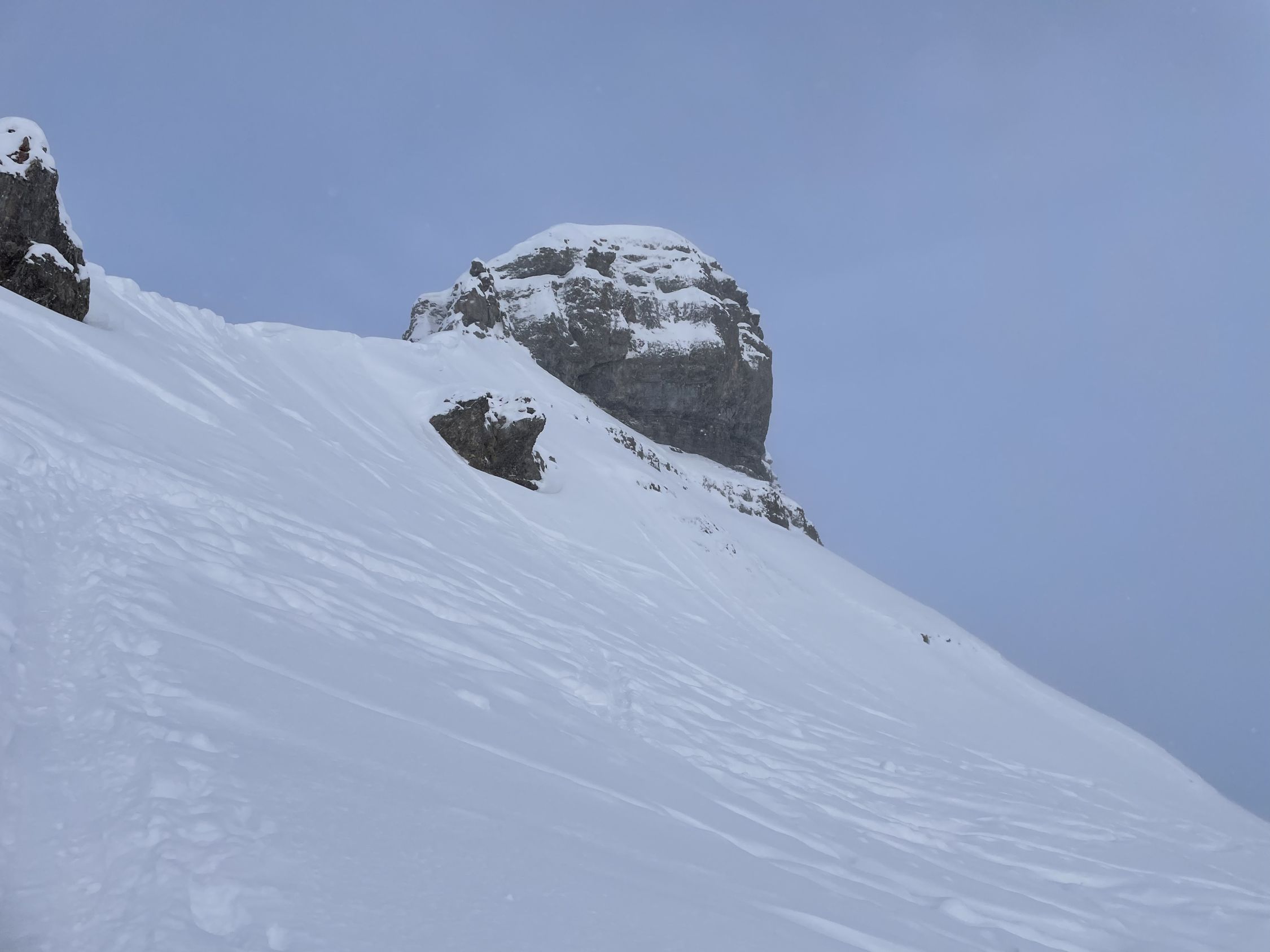 Abfahrt südwärts über Rotenbalm direkt hinunter zur Talstation, möglich aber schwierig. Die schlechte Sicht hat es noch deutlich erschwert.