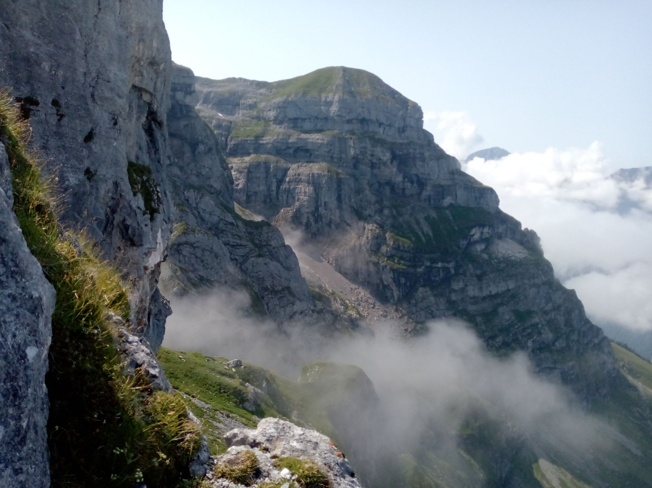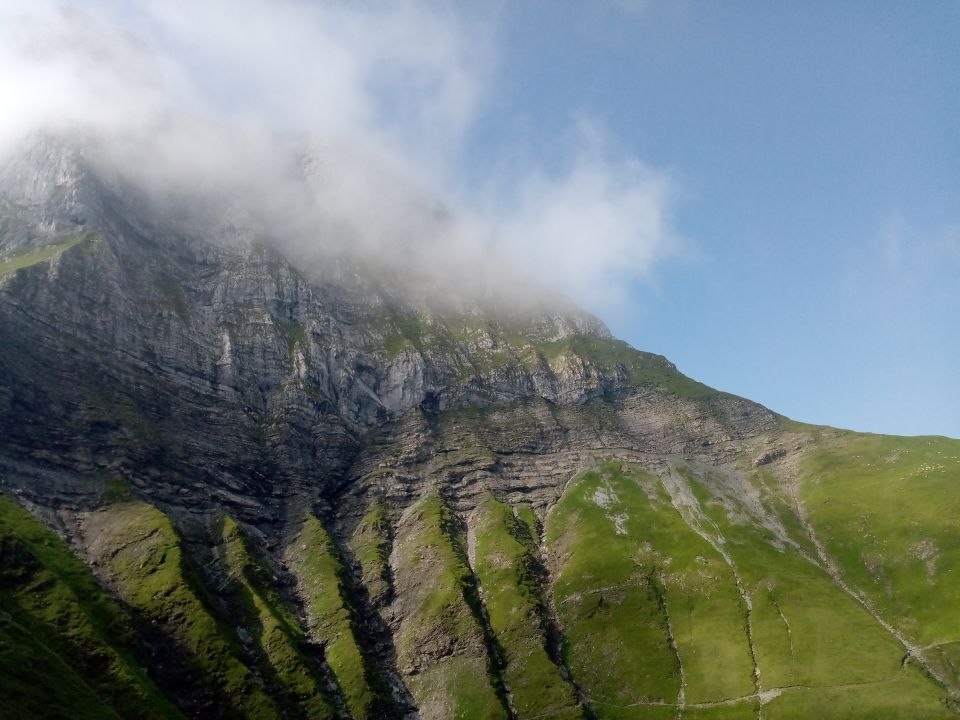 Klettertour mit alpinem Ambiente. Am Einstieg sind wir nicht in die Grasrinne östlich des ersten Felsaufschwung gestiegen, sondern direkt die Felsen hoch(ca. III, kaum abzusichern). Danach der Route gemäss Beschreibung, bis zur exponierten Schlüsselstelle (III+, mehrere Bohrhaken vorhanden) folgen. Diese war problemlos zu überwinden und kurz im Anschluss erreichten wir den Gipfel des Rund. Nun kann man den eindrücklichen Aufschwung zum Gross Walenstock entweder auf der Ostseite umgehen, oder schwieriger, direkt erklettern. Wir entschieden uns, den Aufschwung zu klettern. Dieser ist brüchig und schwer abzusichern. Achtung: Die meisten Bohrhaken auf der Route wurden entfernt. Die Schwierigkeiten sind aber nie höher als IV. Vom Gross Walenstock nun über den Verbindungsgrat zum Rigidalstock. Dieser wird im T6-Stil mit einigen kleinen Katzensprüngen überwunden. Zu guter Letzt steigt man vom Rigidalstock via Klettersteig nach Engelberg ab.