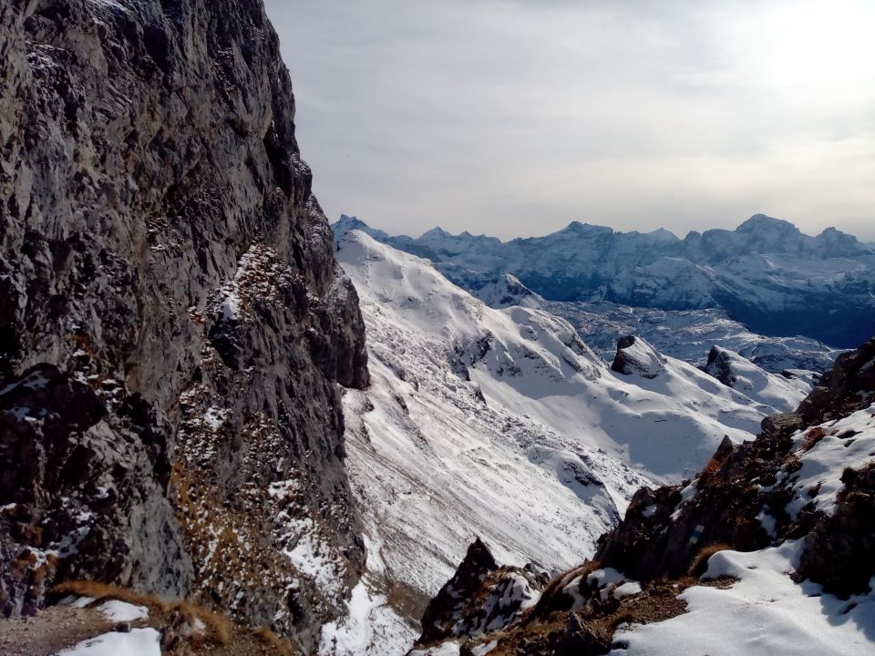 Aufstieg bis zum Chaisertor so ziemlich schneefrei. Nordseitig ziemlich unangenehmer Schnee und noch keine Spuren. Mussten an der ersten Stelle zuerst das Drahtseil ausgraben. Mithilfe des Seils trotzdem machbar. Abstieg mithilfe einer Bandschlinge problemlos.