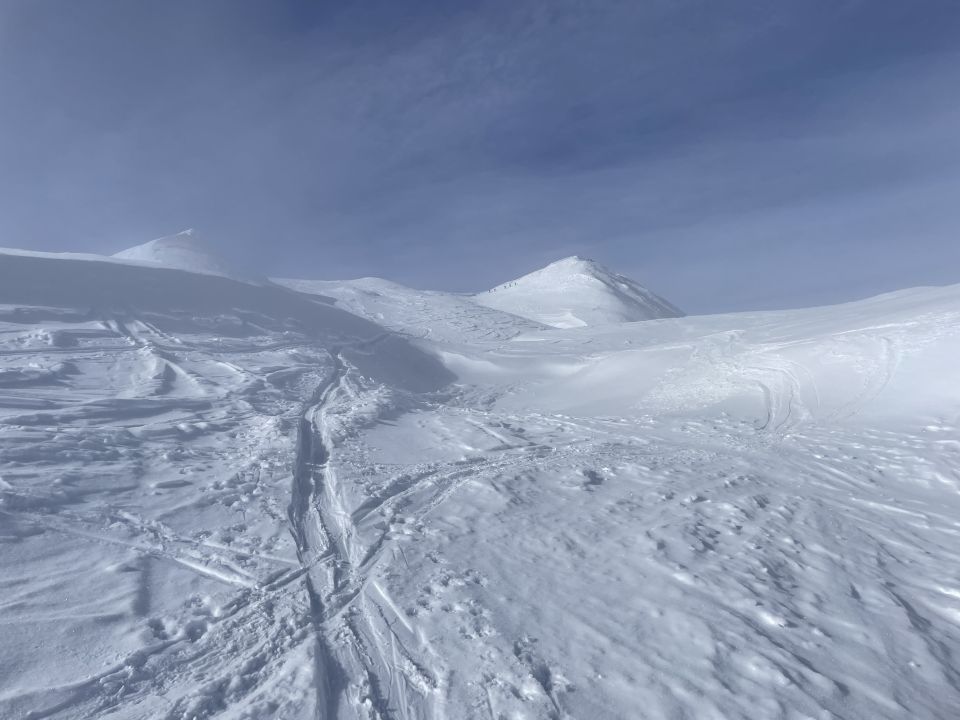 Genug Schnee, allerdings im gesamten Bereich oberhalb der Baumgrenze Bruchharsch. Viel Triebschnee.