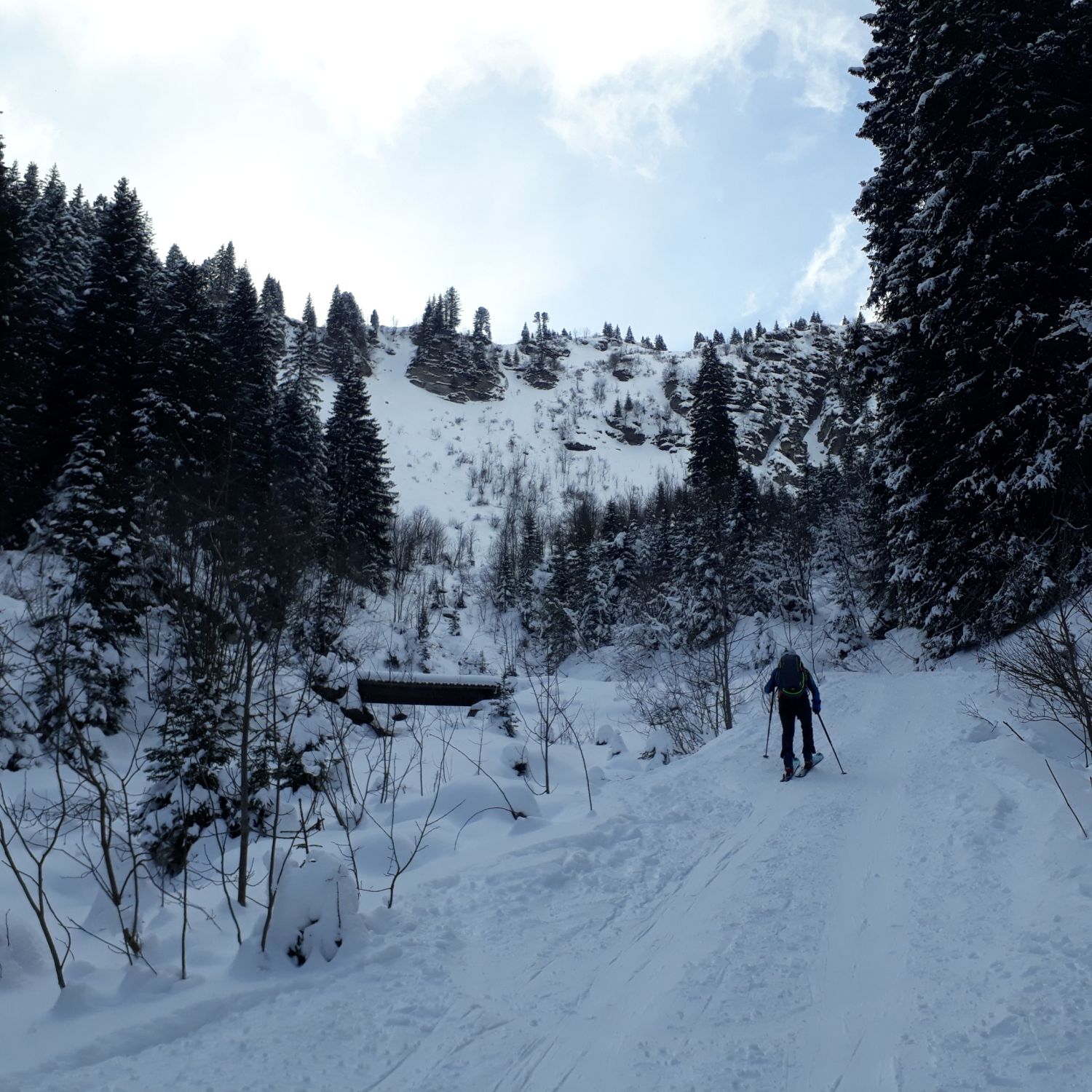 Nicht so viel Schnee unten am Parkplatz, aber genügend, da die Tur auf dem Weg hoch geht. Gute Sicht bis ~3/4, leider danach im Nebel, mit kaum Sicht. Wir sind dann umgekehrt, da es ein sehr kalten Wind und wenig Schnee auf dem Grat gab. Deswegen haben wir entschieden bis zum Wald herunter zu fahren und wieder hoch bis zu diese Stelle zu fahren. Dieses Teil war nämlich voll super Pulverschnee. Leider sind wir im Nebel heruntergefahren. Viele Leute sind weiter hoch, wahrscheinlich bis zum Gippfel.