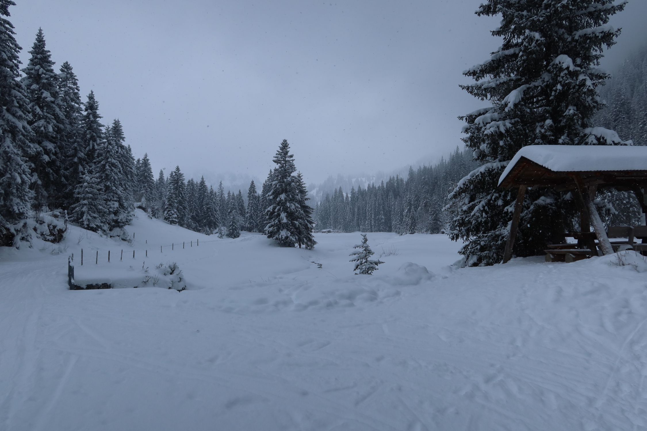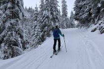 Start um ca. 10h30 bei leichtem Schneefall. Überall wunderbarer Pulver, im obersten Teil leider etwas neblig. Gute Aufstiegsspur, dann die Route etwas abgekürzt und vor dem Seebergsee-Parklatz links hoch bis auf den Grat und zum Stand. Die Abfahrt durch die Nordhänge Richtung Hindermenige war wunderbar, aber auch die Westhänge Richtung Strasse sind lohnenswert. Insgesamt herrlicher Winter mit tollem Powder