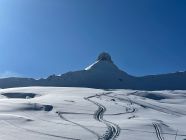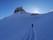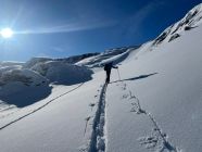 Auf dem Forstweg knapp ausreichend Schnee. Oberhalb Spitzmeilenhütte gute Verhältnisse