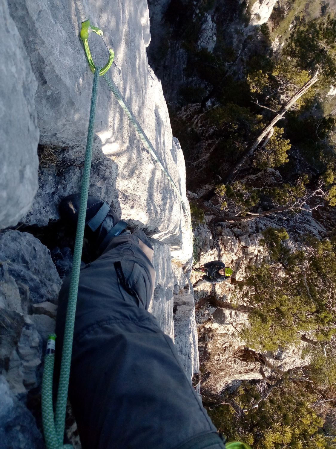 Tolle, lange, alpin anmutende Klettertour. Wenn man die Schlüssellänge, den luftigen Quergang, nicht umgeht sind die Schwierigkeiten ca. 5c+. Wir waren, mit Pausen ca. 8 Stunden unterwegs und kamen pünktlich zum Sonnenuntergang am Gipfel an. Zu dieser Jahreszeit trifft man hier kaum Leute an. Wir trafen nur auf eine weitere Seilschaft am Südgrat. Eine weitere Seilschaft kletterte den Ostgrat. In der Hochsaison müsste der Südgrat und die Südwände, wie auch der benachbarte Eulengrat, den wir einen Monat zuvor kletterten, ziemlich überlaufen sein. Wer mit der Kälte zurechtkommt, stattet dem Gebiet also besser im Frühjahr einen Besuch ab.