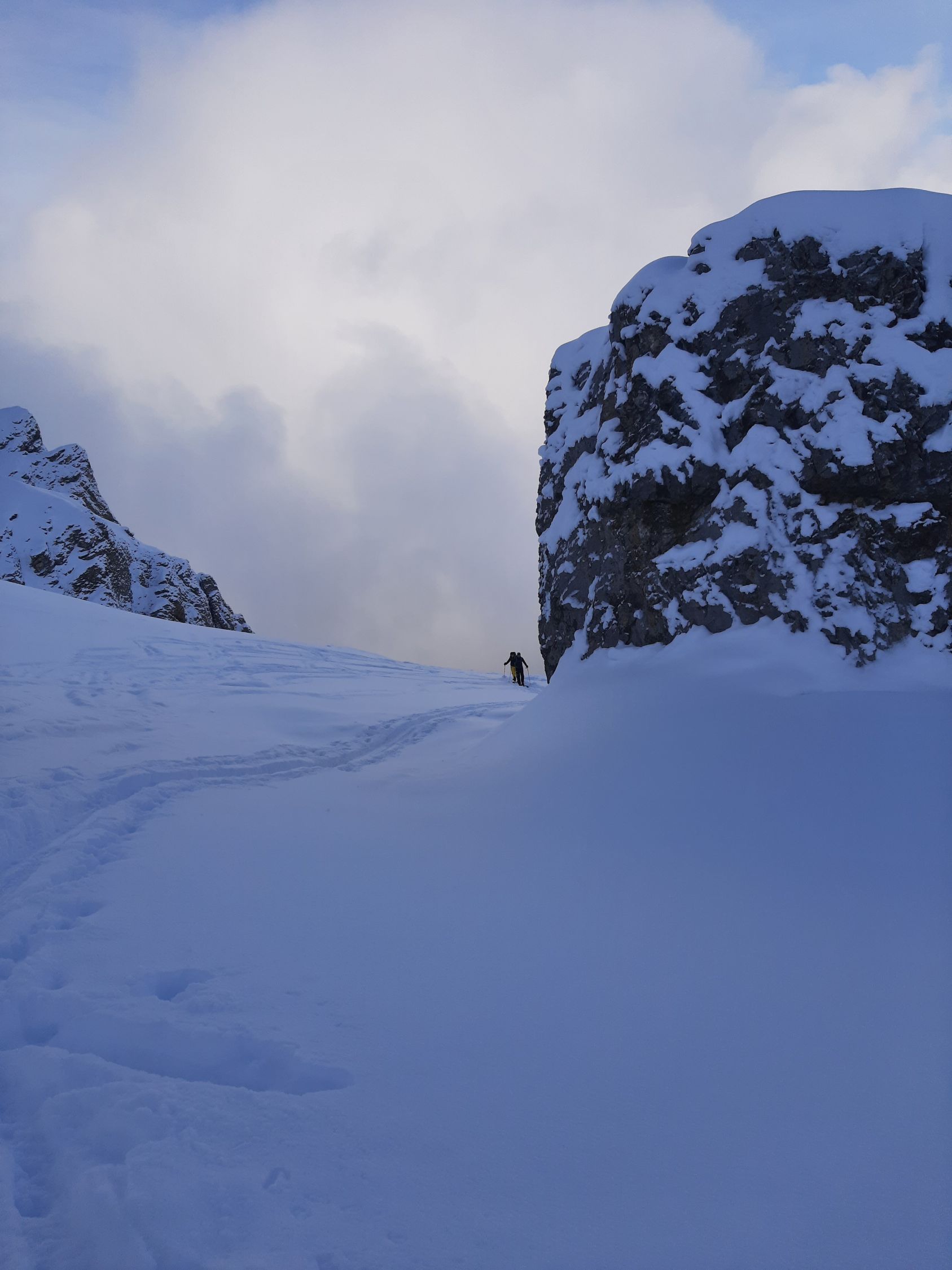 Danach war es sehr schwierig von 2150-1800müM zum Abfahren. Es hatte viele überschneite Steine und die Sicht war schlecht. Die Letzten Hänge bei Holzweid dann wieder top!