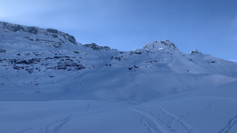 Strasse ab Barriere leicht schneebedeckt. Bis ca. 1800 eher knapp Schnee. Oberhalb aber soweit gut. Im Aufstieg sowieso unproblematisch. In der Abfahrt oben schöner Schnee (wohl windverfrachtet, aber noch sehr pulvrig / nicht gepresst). Unterhalb 1800 hat man wohl den einen oder anderen kleinen Steinkontakt; meist kann man die Stellen aber gut umfahren.