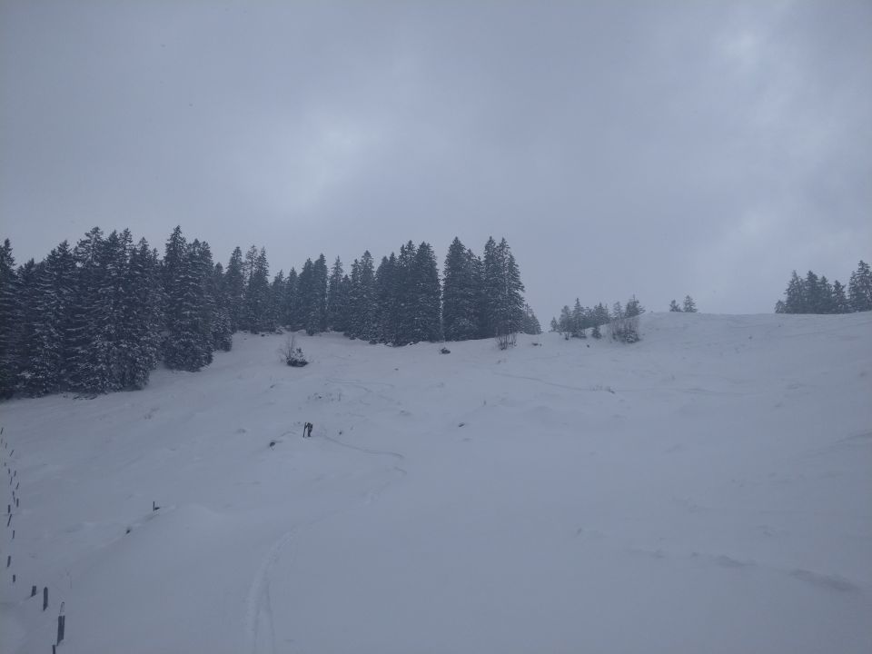 Es liegt genug Schee um bereits vor der Bergstation mit den Skiern loszulaufen. Abfahrt ist dann bis auf Höhe des Klofter Ladens möglich. Auf der Schotterstrasse nach Ahorn liegt genug Schnee für einen angenehmen Aufstieg. Bis auf eine Stelle unter den Bäumen kucken auch nur wenige Steine hervor. Auf dem Abschnitt zwischen Ahorn und Baumgrenze genug Schnee für schöne Schwünge, aber Vorsicht: die Unterlage fehlt oft und Feindkontakt ist möglich. Auch oberhalb der Baumgrenze bis zum Brisenhuis ist noch Feindkontakt möglich, es lässt sich aber bereits recht sorglos rumkurven. Auf dem letzten Stück liegt dann definitiv genug Schnee um keinen bösen Kantenschliff zu erfahren. Wir fanden sogar meist noch unverspurte Hänge auf der Abfahrt (wer sucht findet ;-)).