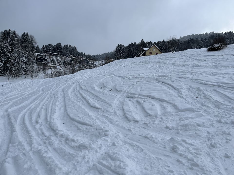 Es hat Schnee gegeben. Für die Unterlage wäre gesorgt. Jetzt müsste es nochmals 20-30 cm schneien. Dann wäre es ideal. Es ist aber möglich mit den Skis ab dem Parkplatz bei P.847 aufzusteigen und auch wieder bis dahin abzufahren. Heute kaum jemand unterwegs. Sehr kalt und windig. Oben starker Nebel. Restaurant auf dem Tanzboden ist am Montag geschlossen.