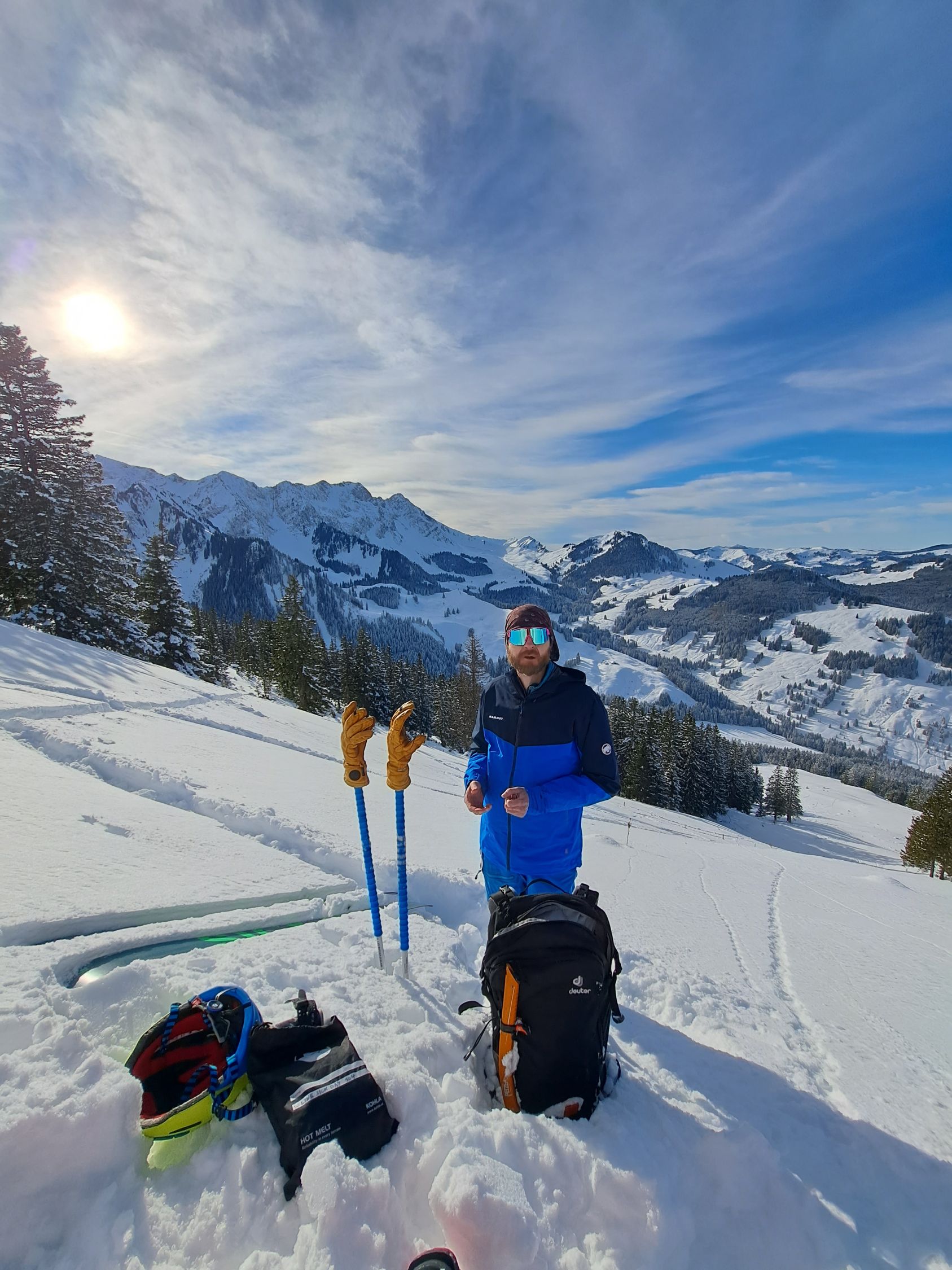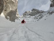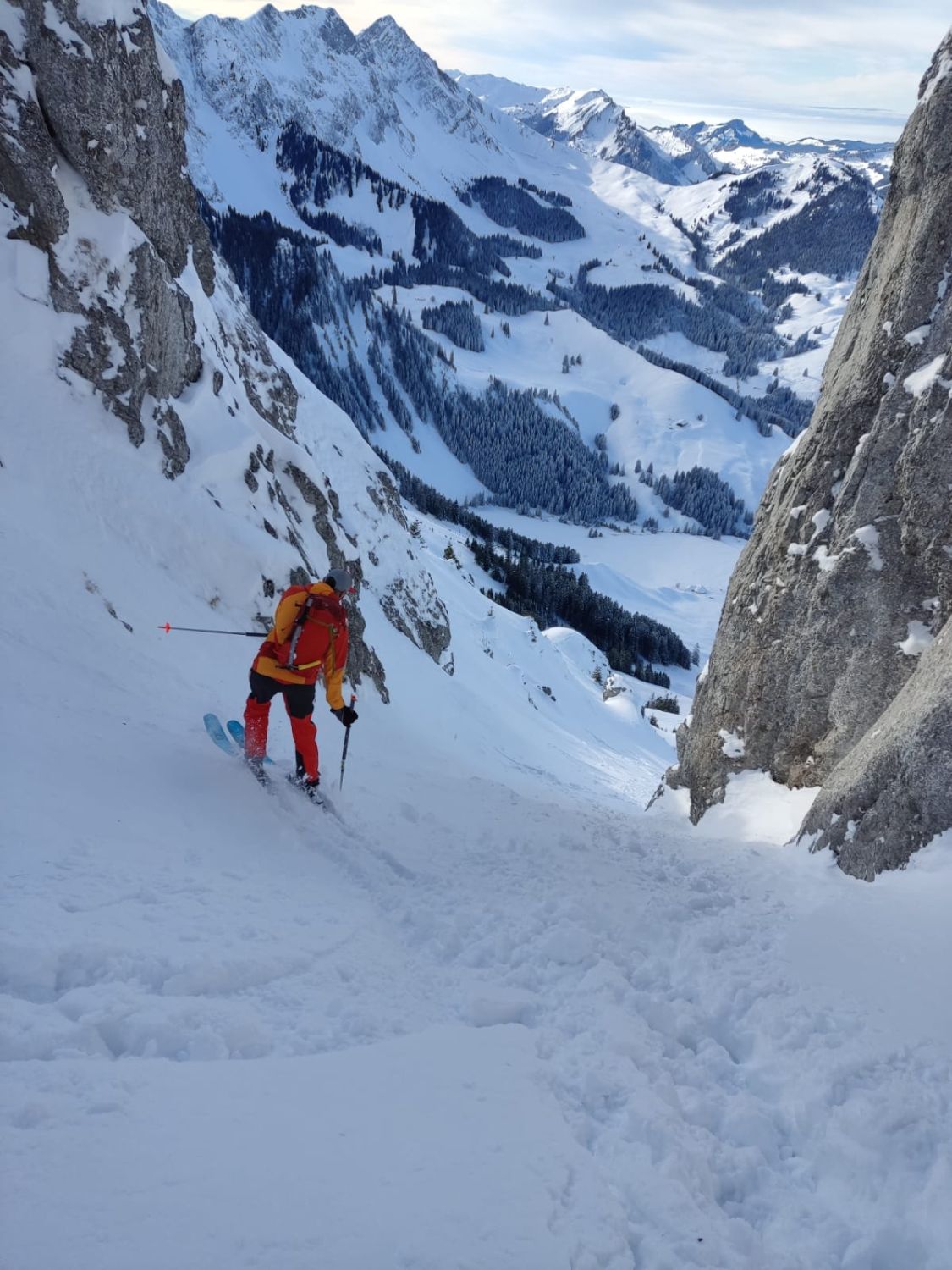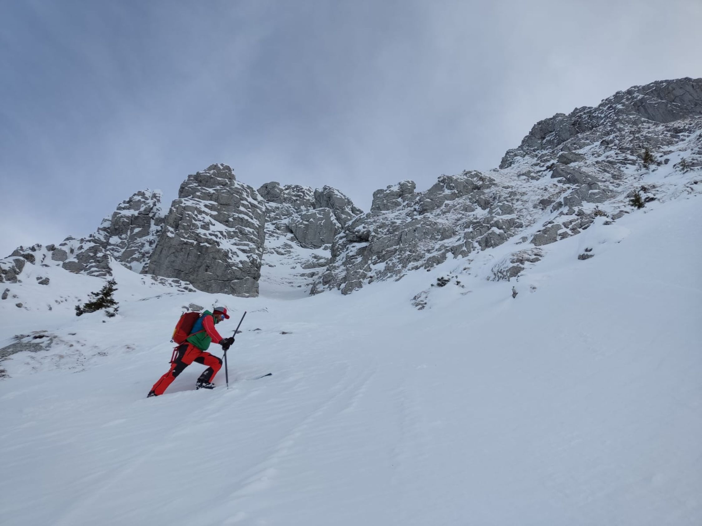 Genug Schnee von unten,ganze Flanke Pulver ohne Windeinfluss,da genug Schnee Aufstieg mit Ski bis vor Culi möglich.Dann kurzees Hüfttiefes Wühlen zu Fuss bis vor Gipfelaufschwung-leider komplett Schneefrei.Da keine Lust auf Steigeisen hoch und runter Abfahrt ab da in super Pulver mit einigen leichten Geräuschen unter Ski im Steilen,bis Waldschneise runter.Da noch mal Aufgefellt und hoch über Sommerweg auf Grat(1950m.) (weil ja schon gespurt...)