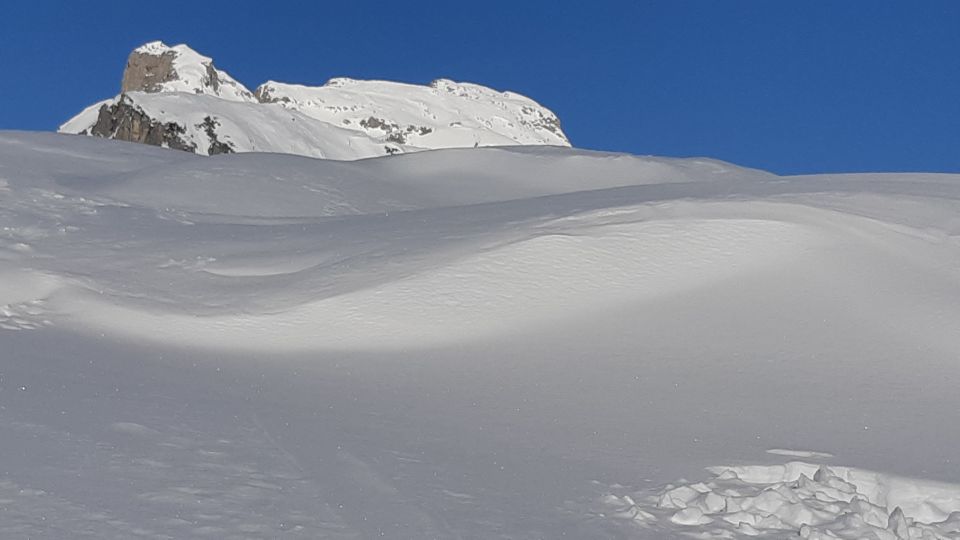 Im Schatten (windgeschützt ist nach wie vor sehr leichter Pulver anzutreffen...Rotspitze stark zerfahren. Am Schollberg hats noch Platz