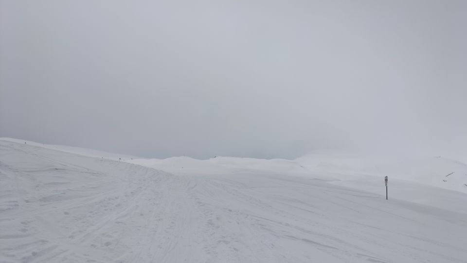 Die ersten Meter knapp mit Schnee, mit kleinen Steinen die durchdrücken, schon bald aber sehr gut, Pistenänlich entlang der Alpstrasse, oben immer noch schöner Pulverschnee, leider oben nur ganz kurz Nebelfrei heute, auch war es oben raus sehr kalt.