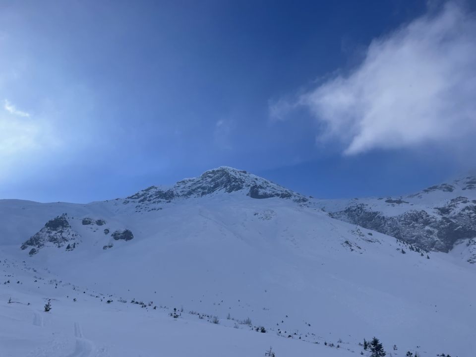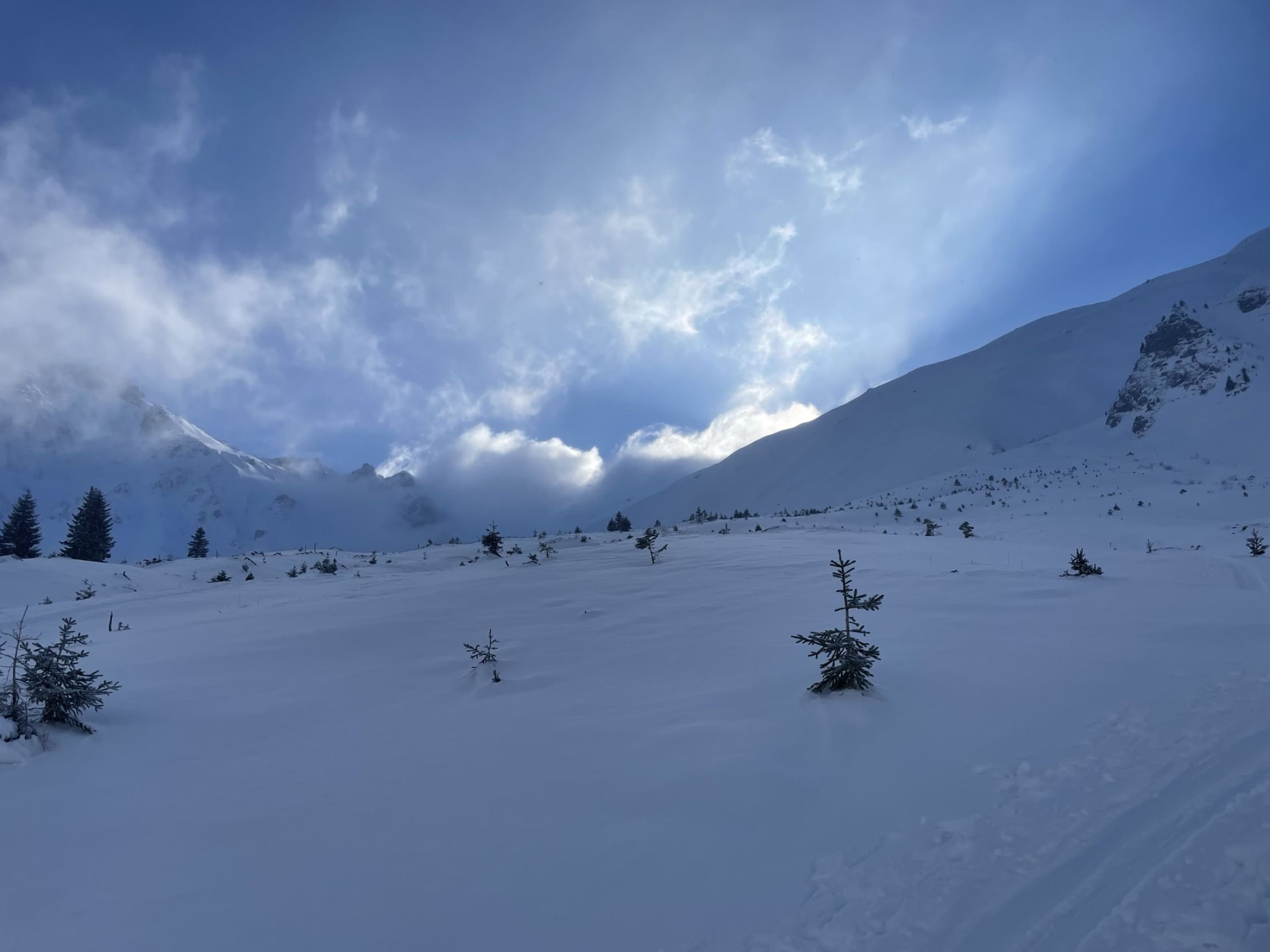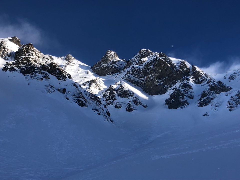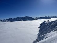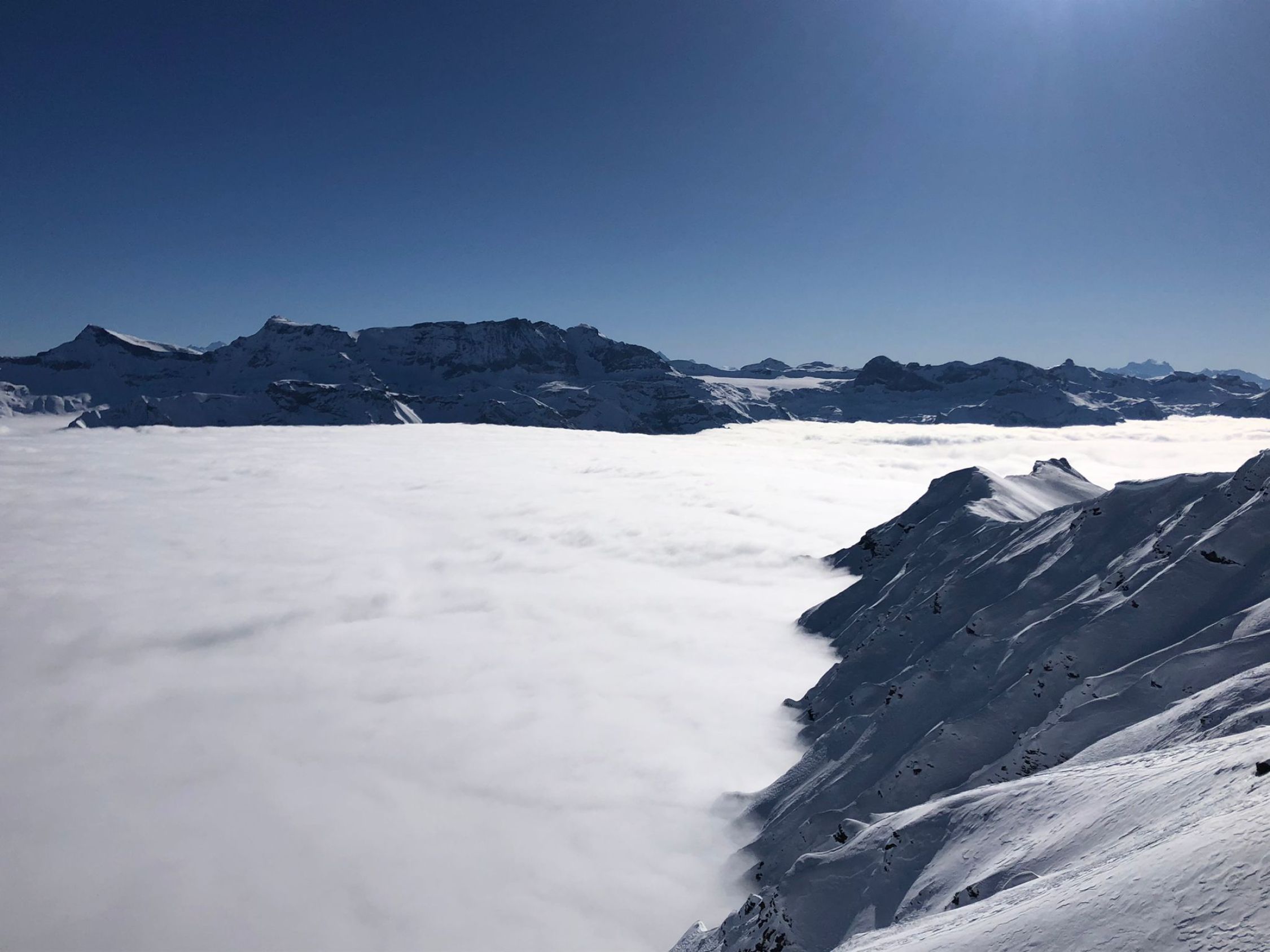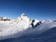 Mehrere gute Spuren bis zum Sattel. Wir haben aufgebunden sowohl beim Aufstieg als auch im Abstieg. Geht aber auch mit Ski. Ansonsten wechselnde Schneeverhältnisse von Presspulver, Winddeckel, Pulver, Hart alles dabei. Aber besser als ich im Aufstieg gedacht habe. Grossartig war heute v.a. die Szenerie mit Fallwind und zugehöriger Wolke über den Col. Daher auf der Normal route Blindflug bis kurz vor den Aufstieg auf den Grat. Ab dann grand bleu mit Sicht aufs Nebelmeer.