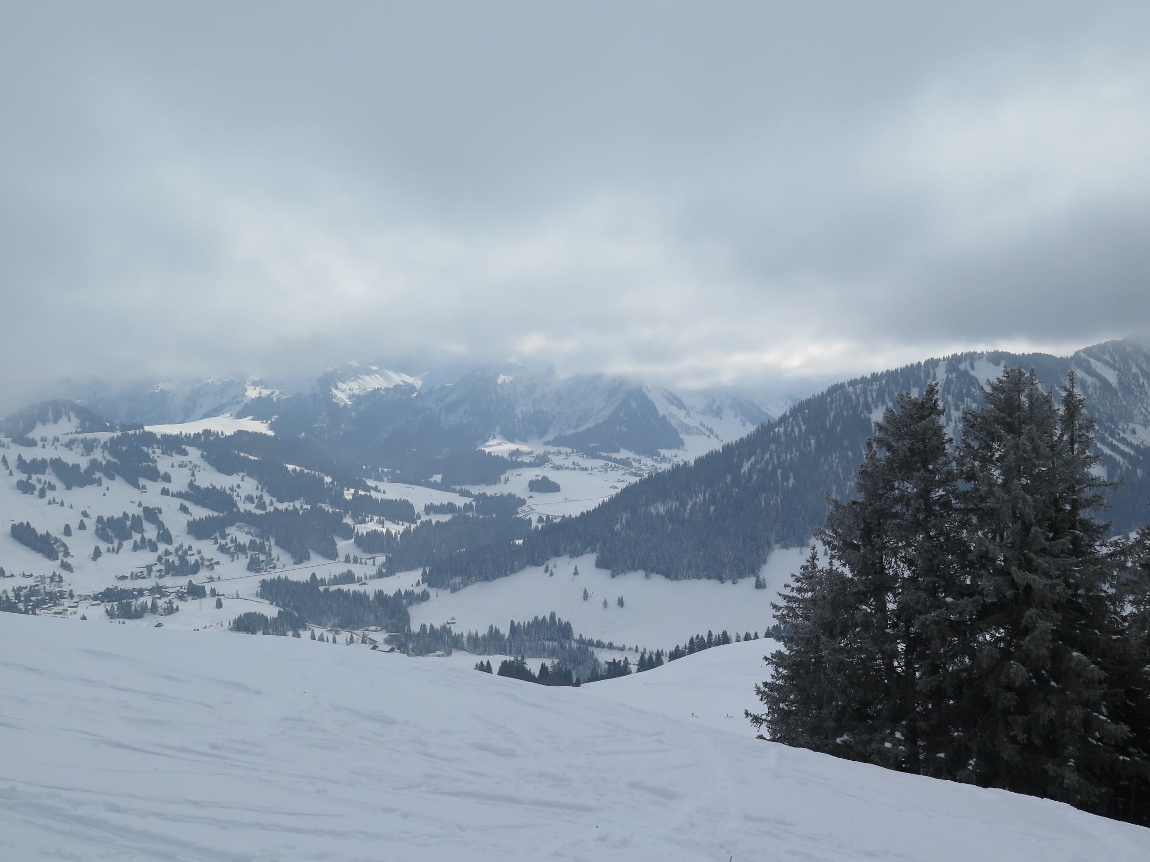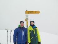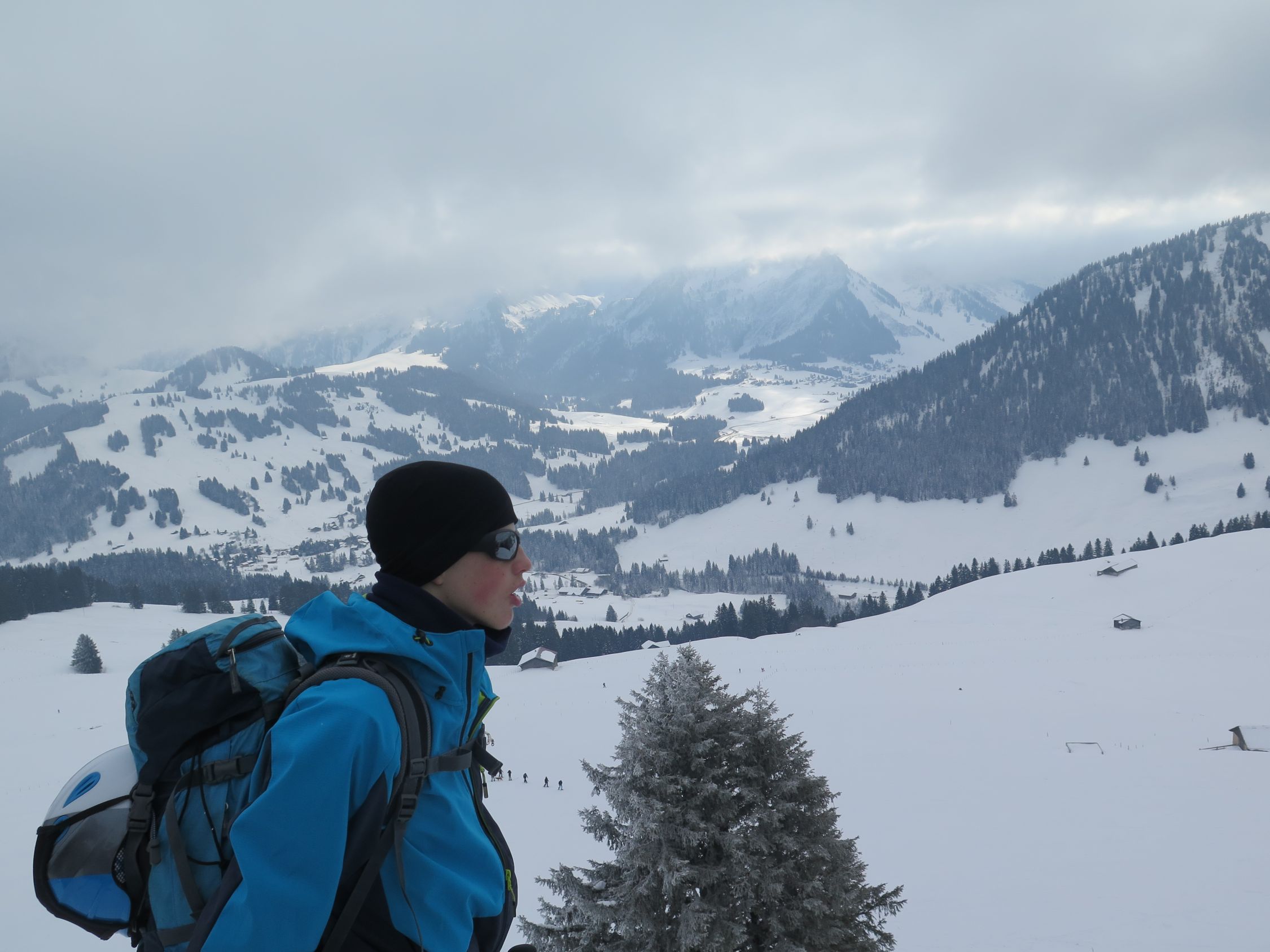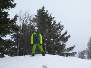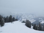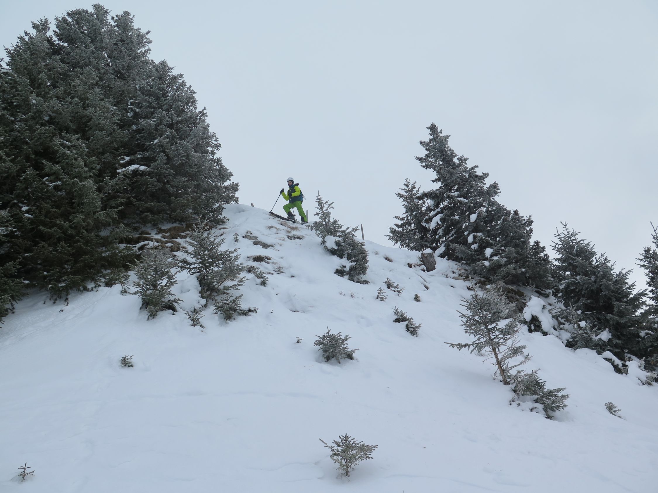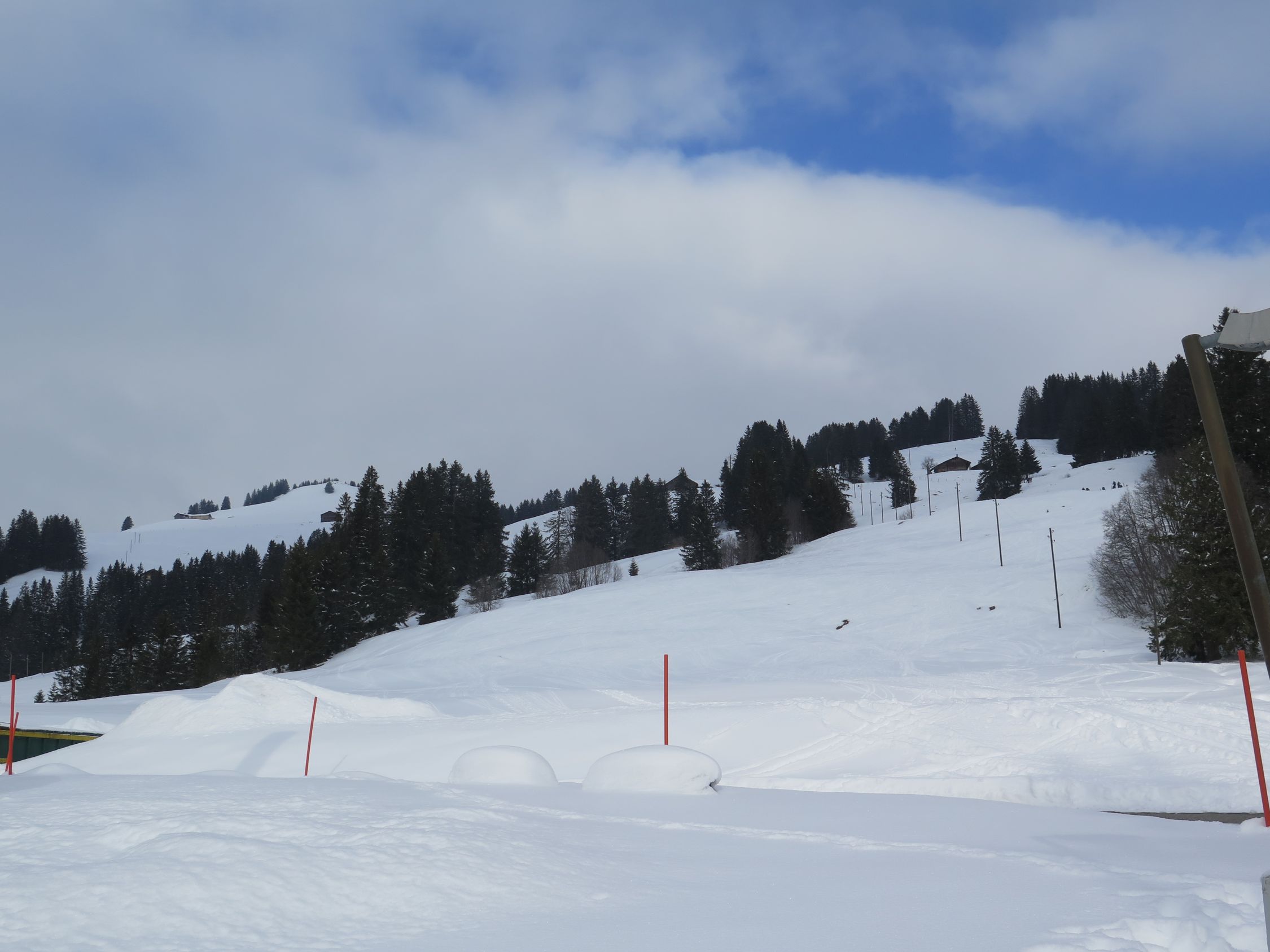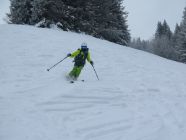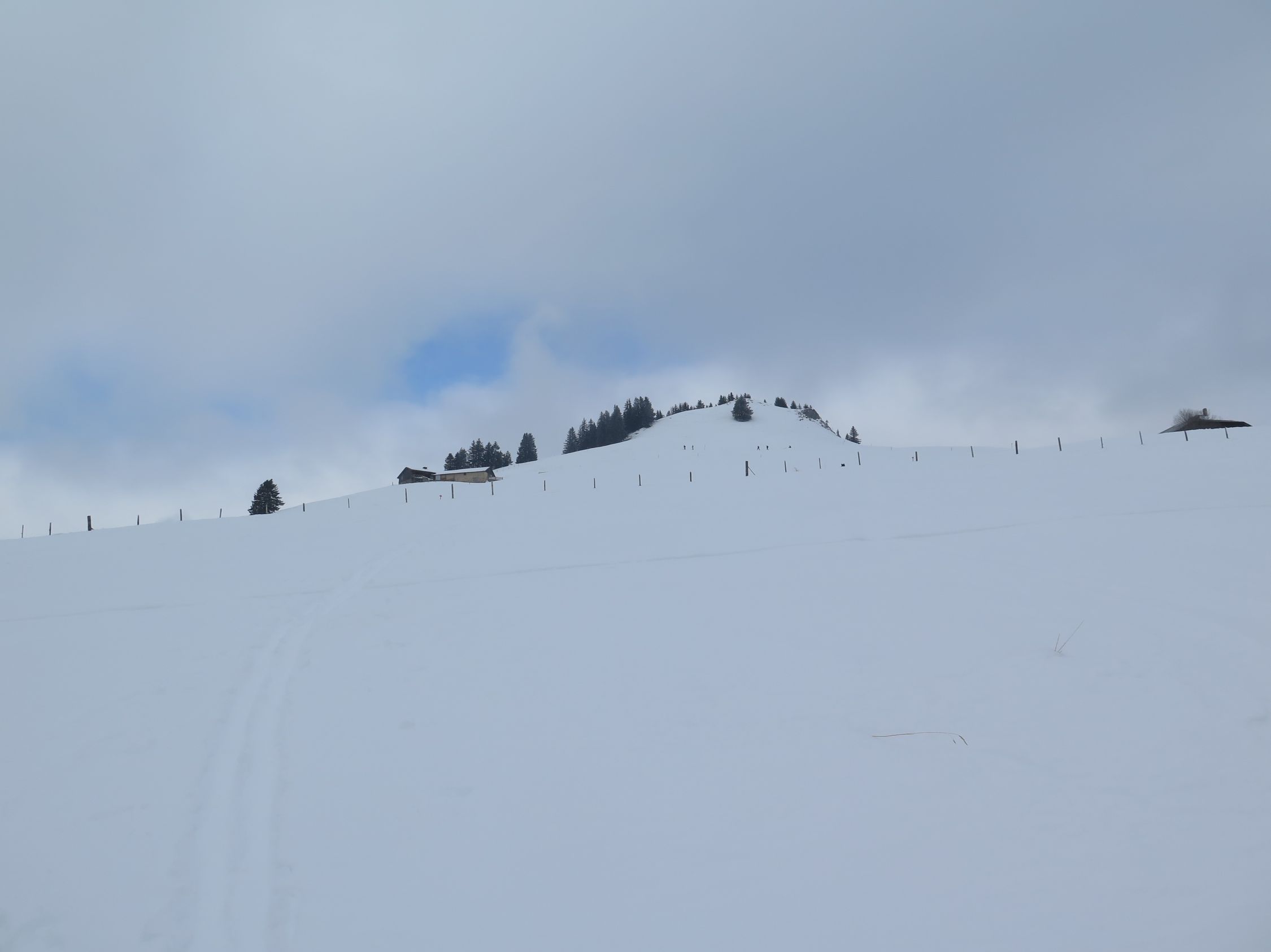 Ganze Route hat noch Pulverschnee. Wobei dieser im Oberen Teil schwer zu finden ist. Da es schon bald eine Piste besteht. Ganz oben Windbearbeitet. Unten wird er spürbar schwerer. im Dorf ca. 20-30 cm Schnee. Heute War hier Hochnebel. Am Morgen sahen wir noch Sonne auf dem Gipfel. Die Biese am Gipfel unangenehm Kalt.