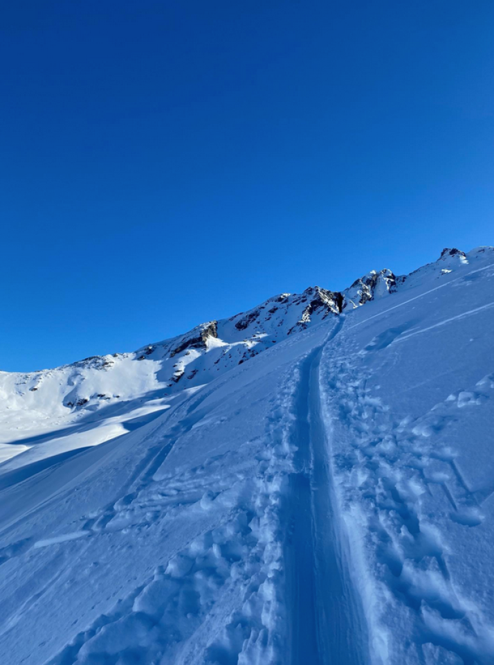 Gute Aufstiegspur direkt ab Ortsmitte (zuerst Skipiste über Vergalda bis Valzifenzalpe )und dann durch's Wintertal immer linkshaltend - Bach ist nicht zugeschneit. Ab der Zollhütte dann wie eigentlich gewohnt schöne winterliche Verhältnisse bis zum Gipfel. Am Gipfel alleine ;-) es zieht alle Richtung Rothbühlspitze ...