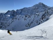 Schnee grundsätzlich gut, aber fast überall verblasen. Sehr kleinflächige Wechsel zwischen Pulver, hartem Schnee und Bruchharsch. Hin und wieder Steine. Wenig Wind, sonnig.
