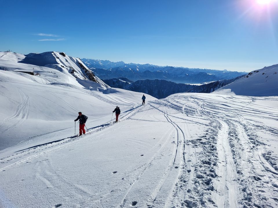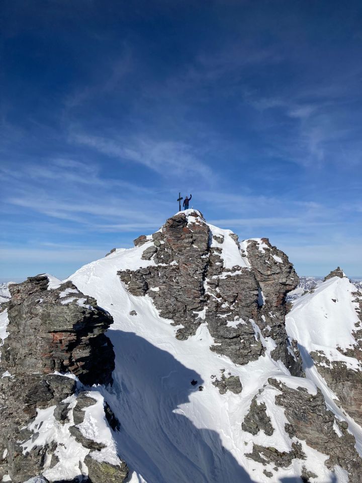 Bis Wildseelücke pulvrig und verfahren, entlang vom Wildsee sehr wenig Schnee, Aufstieg zum Kamm P2810 ist hart, aber es hat eine recht gute Aufstiegsspur. Gipfelaufstieg ist gut machbar, wir haben den direkten Weg gewählt (nicht Wanderweg; dieser sei offenbar vereist).