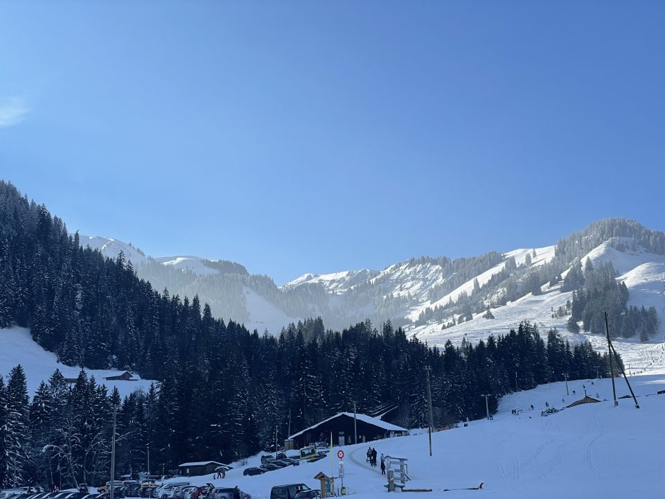 Nachdem ich gestern im stockdichten Nebel am Hundsrügg umkehren musste, sollte heute die Belohnung folgen. Allerdings mit Hindernissen: Beim Tourengänger-Parkplatz in Rossberg blieb ich mit meinen Nichtallrad hoffnungslos stecken, und ich war nicht der Einzige. Dank der Hilfe eines Einheimischen wurden ich und andere wieder flottgemacht. Dass ich danach im Bestreben, den Zeitverlust wieder einzuholen, erstmal ohne Rucksack losrannte, was mich eine weitere halbe Stunde kostete, würde ich ja gerne verschweigen, geht aber irgendwie nicht. Man ist ja der Wahrheit verpflichtet, gell.