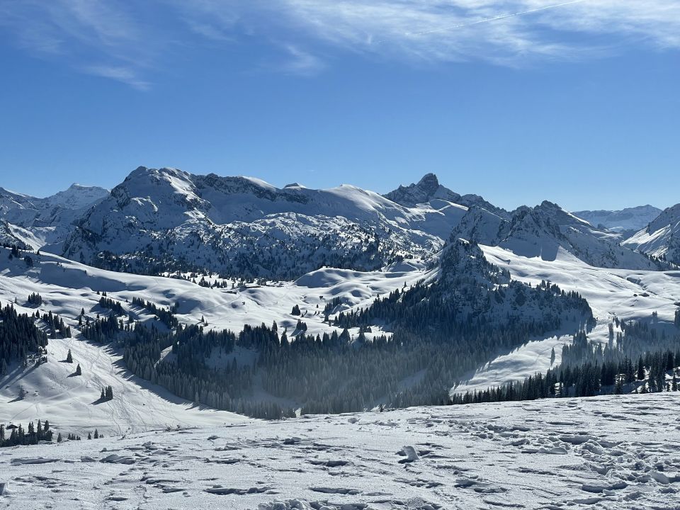 Weiter ging dann alles nach Plan, sehr schöner Aufstieg durch den reifgeschmückten Wald und durch kupiertes Gelände auf den Gipfel. Schöne Rast bei grand bleu und Windstille, so mögen wir das. Die Abfahrt erfüllte dann die Hoffnungen nicht ganz, zu verkarrt war das ganze Gelände, nur wenige Pulverschwünge lagen drin. Schade, es hat tolle Hänge hier… drum gibt es vom strengen Benoter auch nur das hellgrüne Smiley.