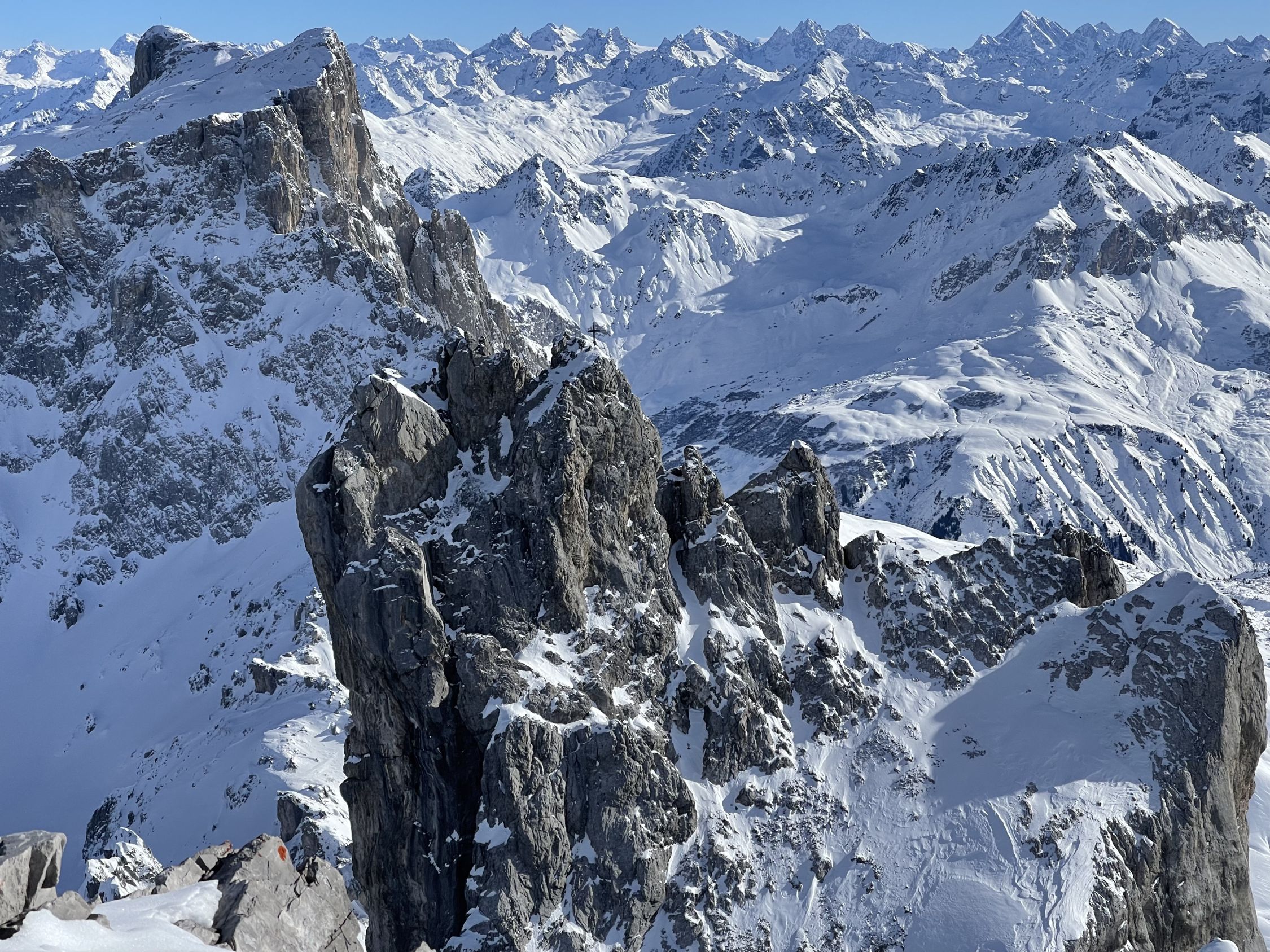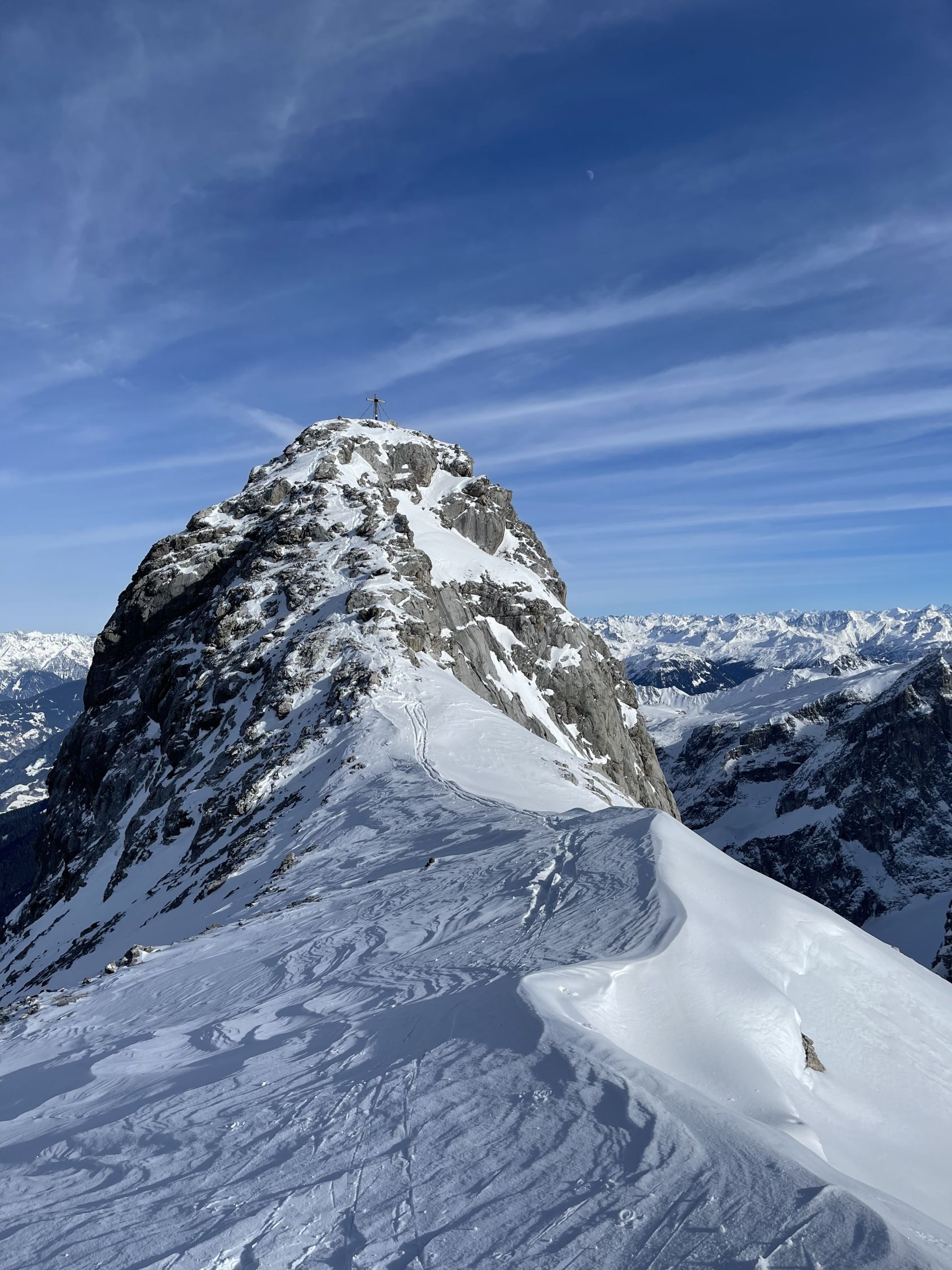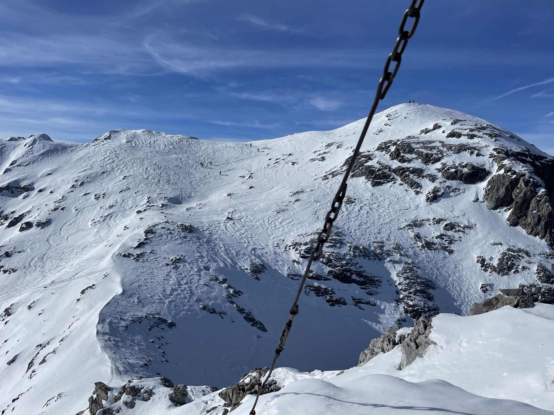 Ganz ohne Steinkontakt ging es trotzdem nicht ab und die Traverse oben am Sporentobel nervt eigentlich immer ein wenig (ich habe mal den Sommerweg auf der rechten Seite genommen, mit Skitragen für die letzten 40 hm, ist eine Alternative.)