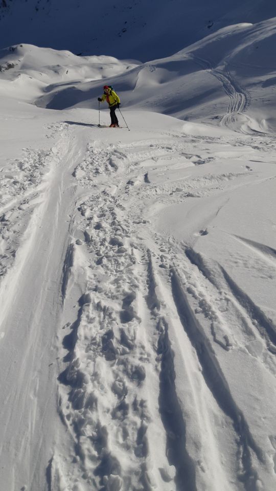 Die Nord Ost Abfahrt haben wir nicht gewählt, obwohl viele Spuren vorhanden sind.
