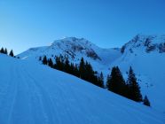 Start ab Schönried, uf de Chessle, Turbach, Giferspitz, zurück über Rüwlisgrabe, Parwenge. Der Südhang vom Hornberg ins Turbach nicht der Hit, durchbrechende Schneedecke, manchmal tragend. Ab Giferhüttli ist die Schneedecke stark vom Wind geprägt im Aufstieg hie und da rutschig aber ok. Einfahrt N-Flanke hart, dann kommt wieder Kartonschnee, ab ca. 2000m und tiefer dann Pulver. Bei Bergzummloch gucken noch viele Steine hervor.