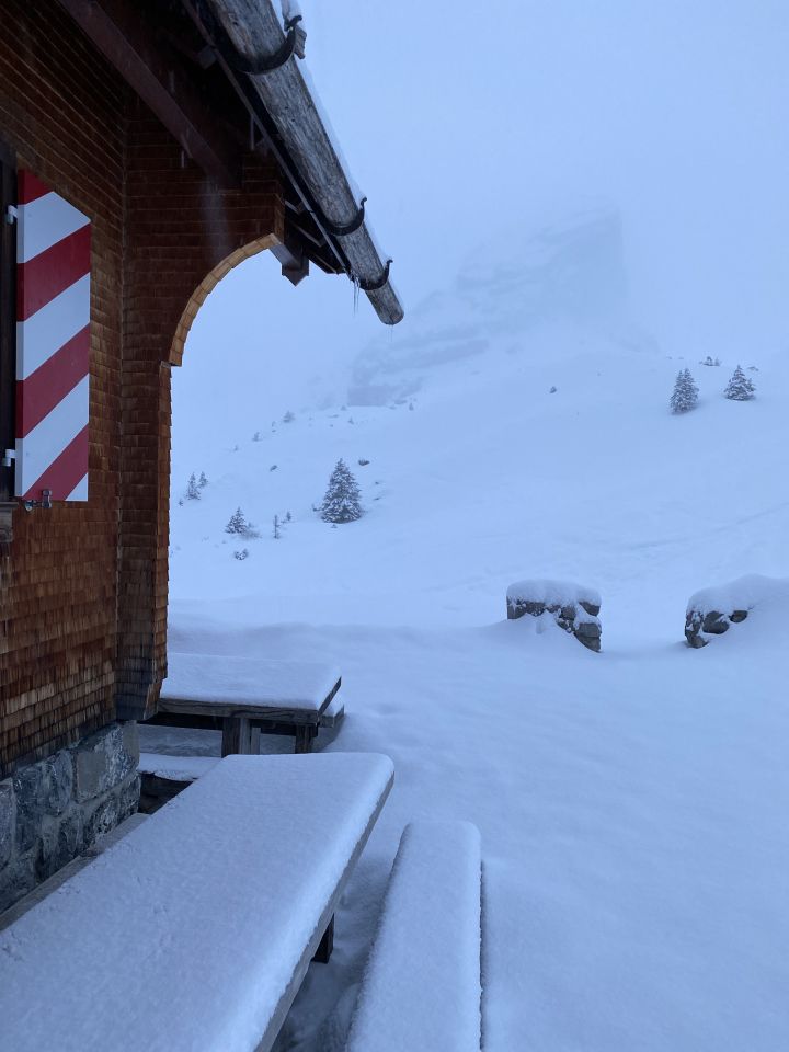 Oberhalb der Hütte gut 10cm frischer Pulver auf guter Unterlage.