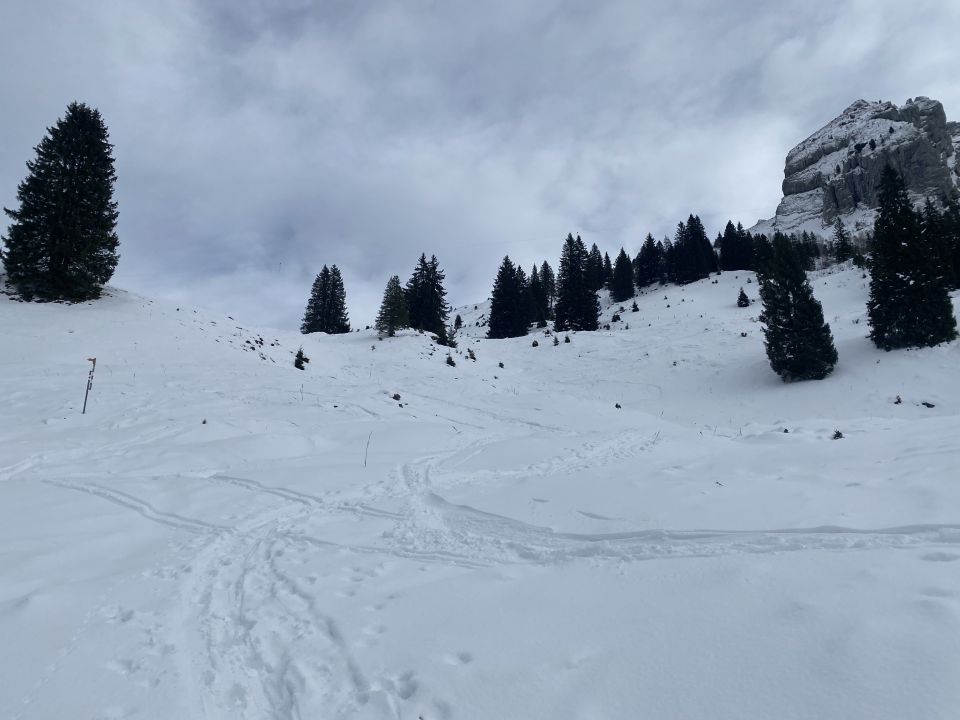 Durch die warme Temperatur und fehlende Abstrahlung wird die Unterlage kompakter und die kommenden Tage bringen hoffentlich den ersehnten Schnee.