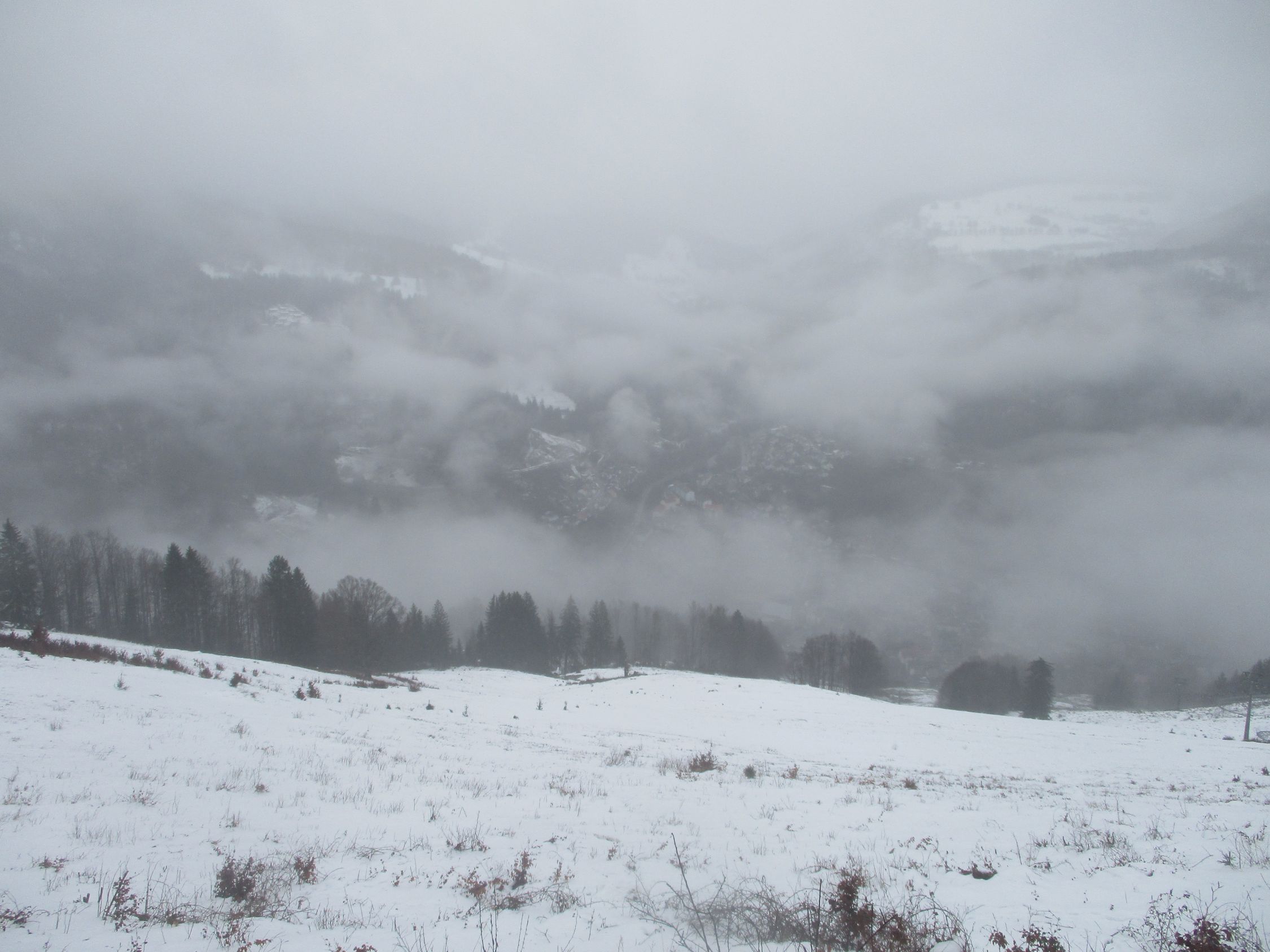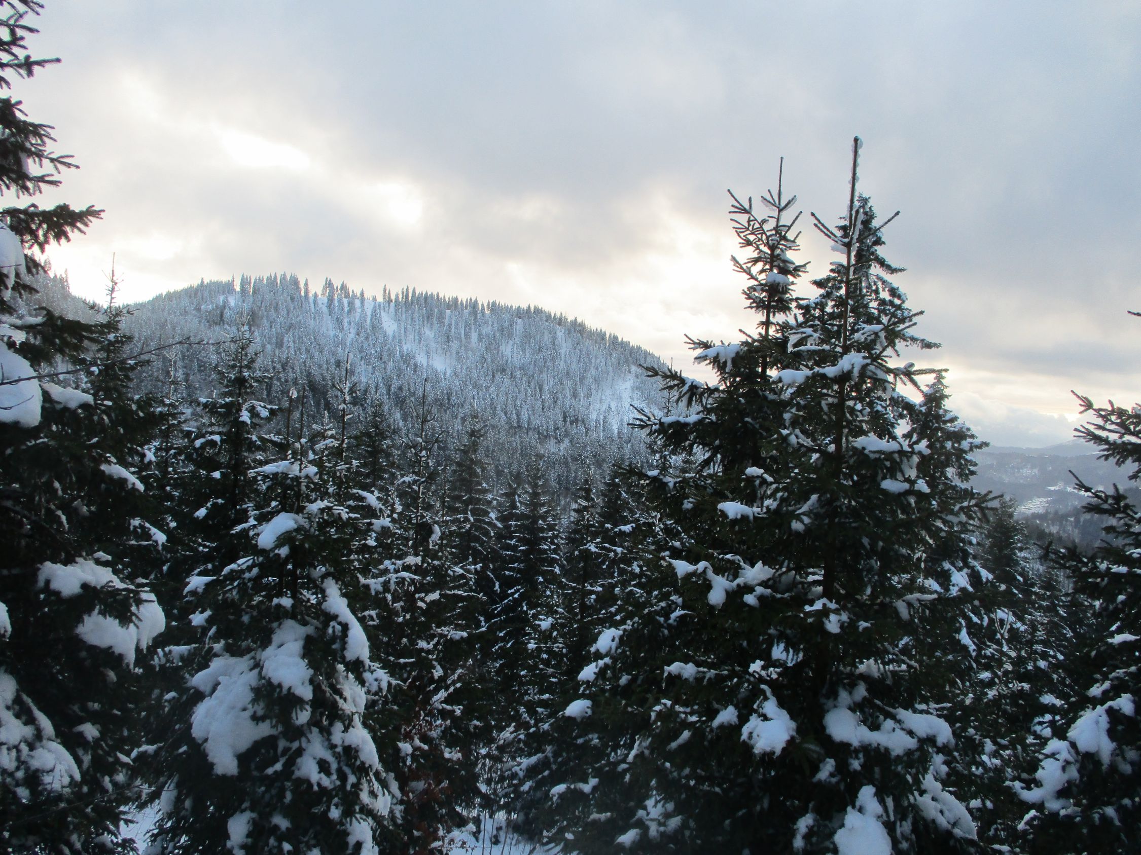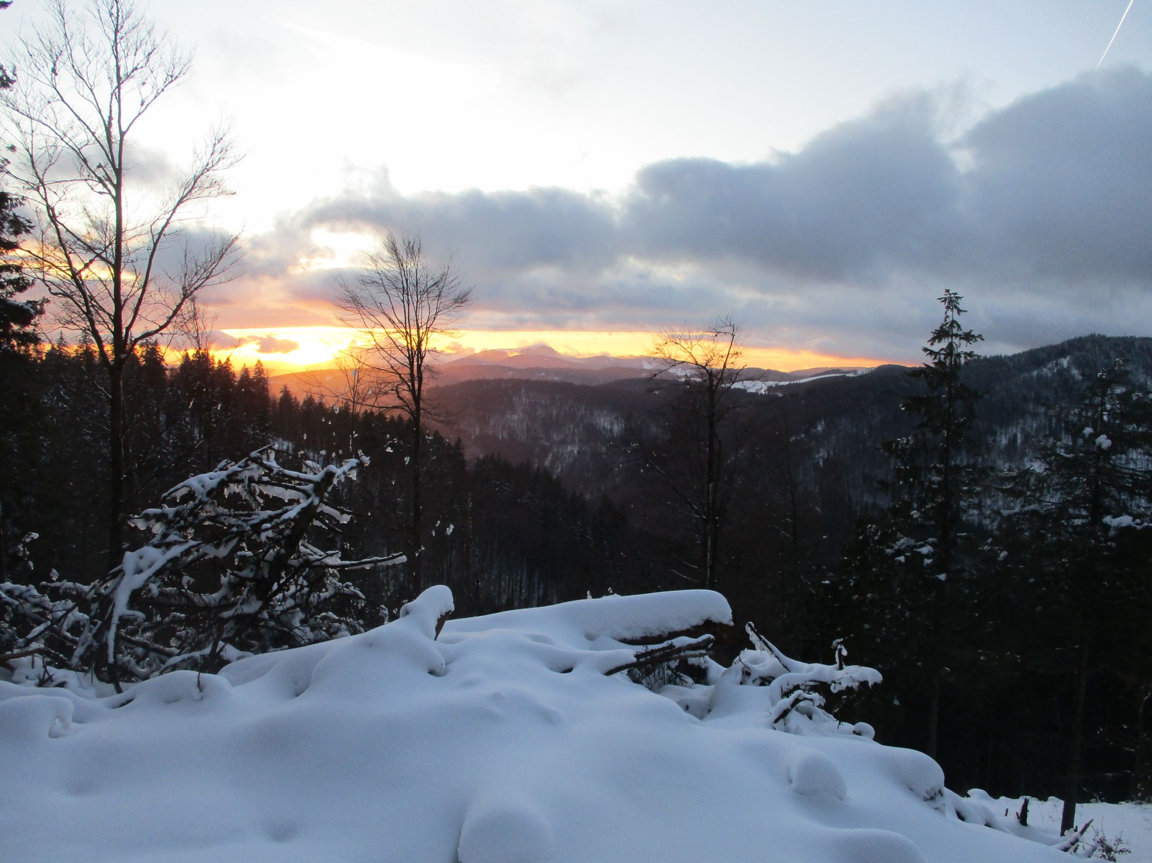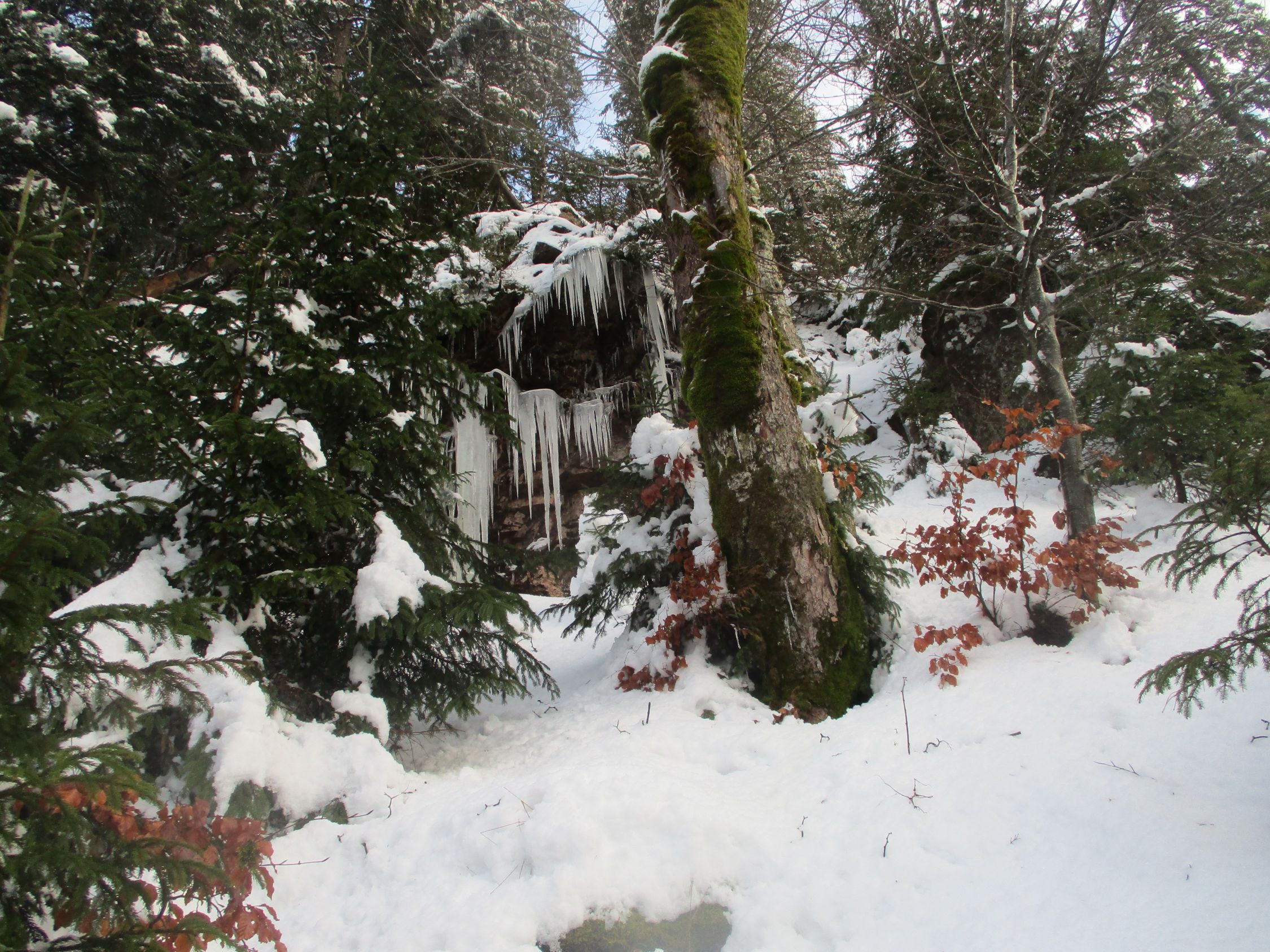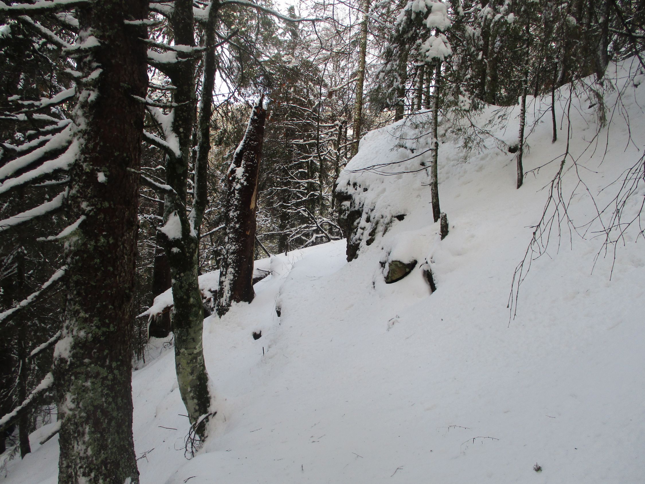 Durchgehend Nassschnee, Tautemperaturen. Das Weiß auf den Bäumen entlud sich nach Herzenslust, und es blieb nicht aus, dass auch ich ab und an mal eine Ladung abbekam.