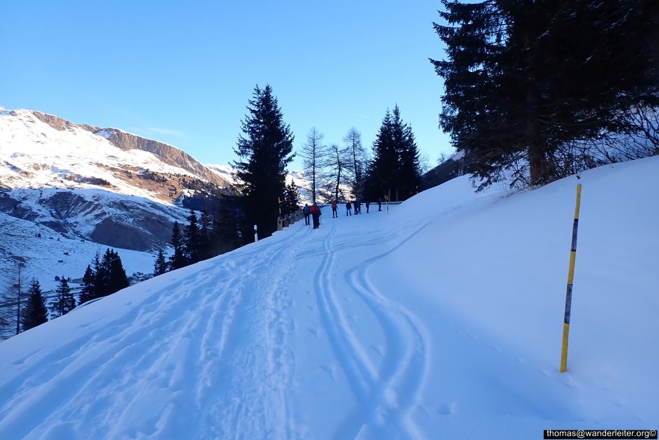 Auf der Südseite sind einige "Wanderer" ohne Schneeschuhe aber mit Grödel auf der Passstrasse bzw. dem markierten Trail unterwegs gewesen.