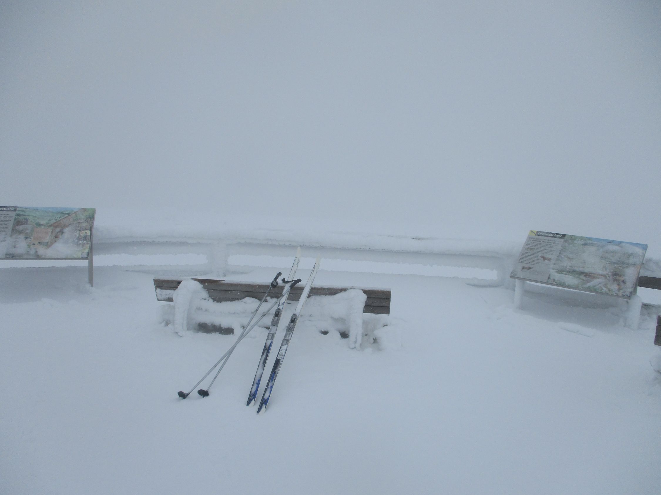An diesem Wochenende wettermäßig umgekehrte Verhältnisse im Südschwarzwald: wo es gestern hätte trüb bleiben sollten, meldete sich ab dem frühen Nachmittag unerwartet die Sonne. Heute hätte Selbige in den Morgenstunden noch präsent sein sollen, doch daraus wurde nichts. Mit Aussichten war´s also heute gar nichts, und am eingeschränktesten einmal mehr wieder auf und um den Feldberggipfel selbst. Dafür weniger Wind, als vor zwei Wochen.,