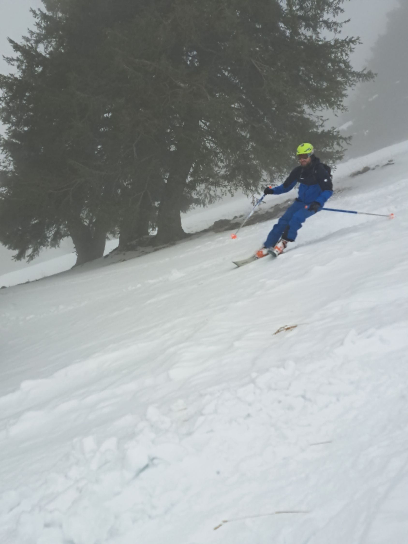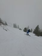 Nassschnee von unten bis oben.Sicht +/- null an Gipfelflanke.Spur bis Gipfel,Flanke schon sehr gut eingefahren(da keine Sicht wenigstens so etwas Reverenz) und Schnee gar nicht so schlecht zum fahren..Genug Schnee oben bis unten.