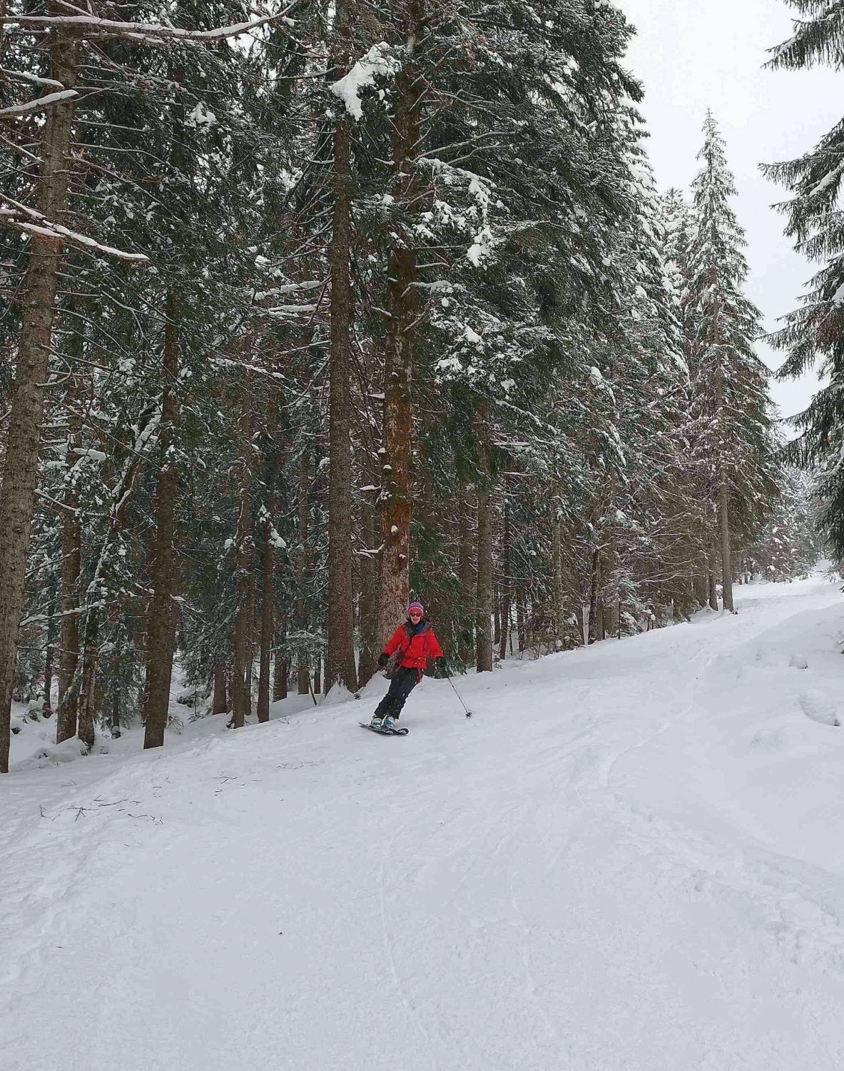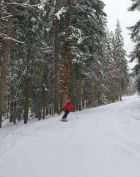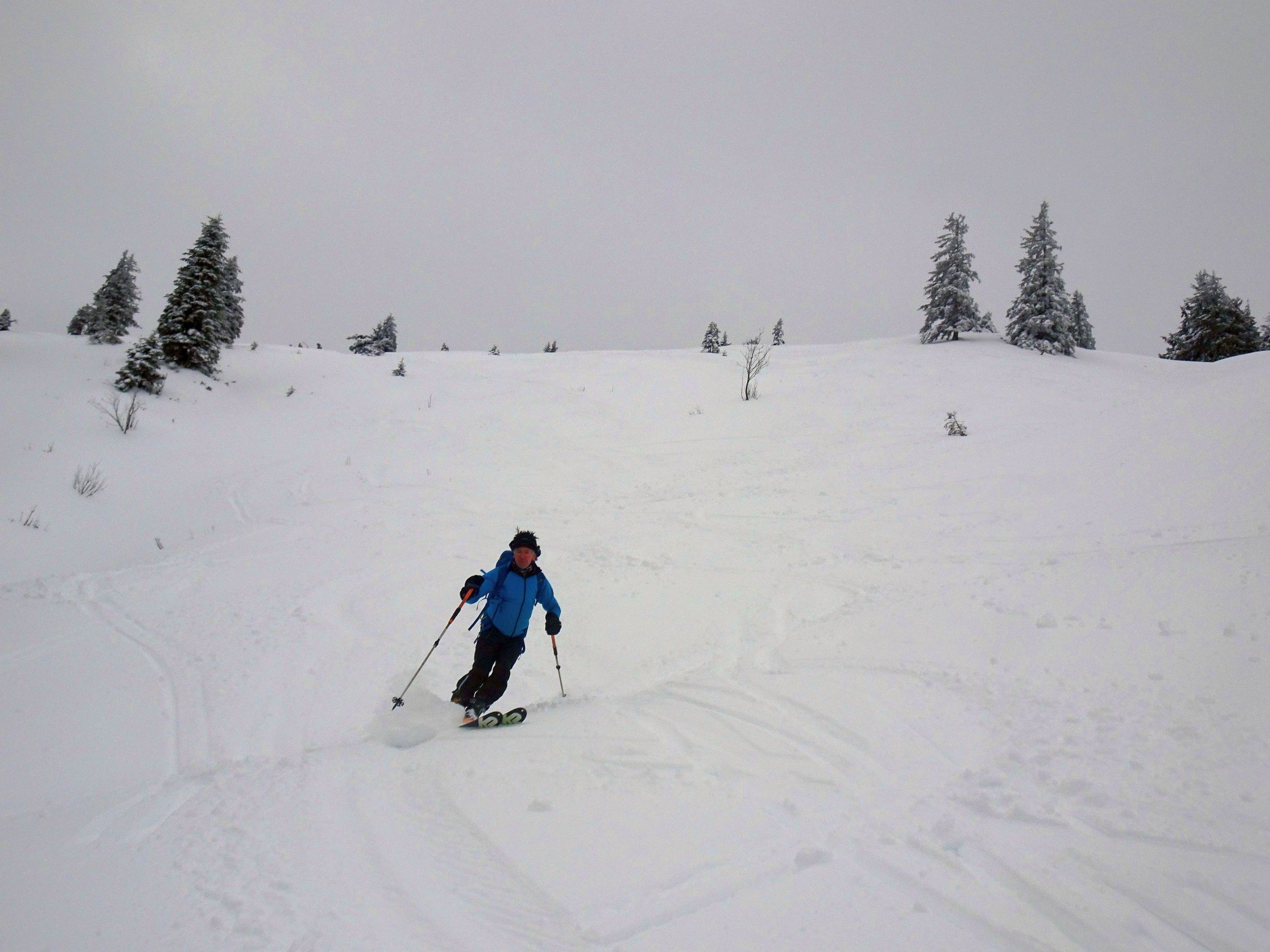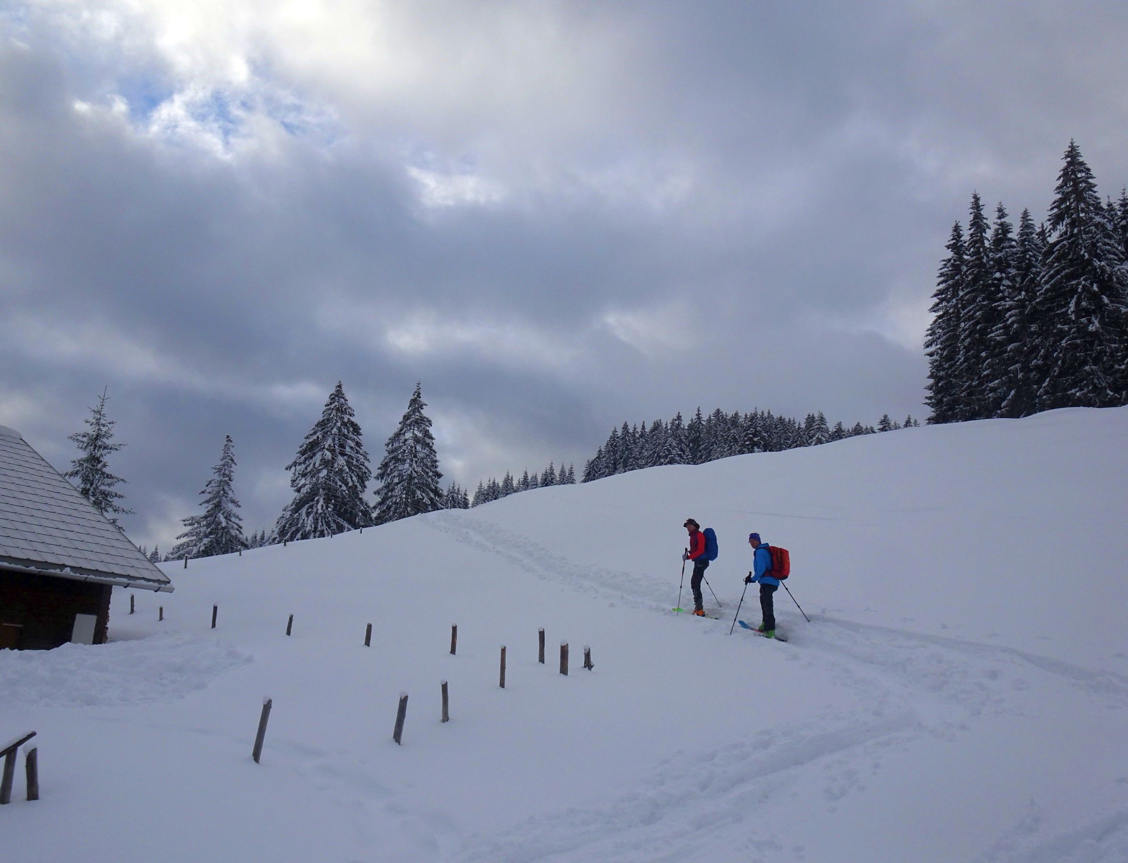 Sonne hat man heute kaum gesehen, meist mehr oder weniger wolkig mit ein paar Aufhellungen, ab Mittag dann Schneefall und Sichtverschlechterung. Einige Leute im Gebiet unterwegs, Burglhütte geöffnet. Wir waren nicht wie in der Beschreibung am Hochschelpen, sondern zweimal auf dem Burstkopf mit verschiedenen Abfahrten.