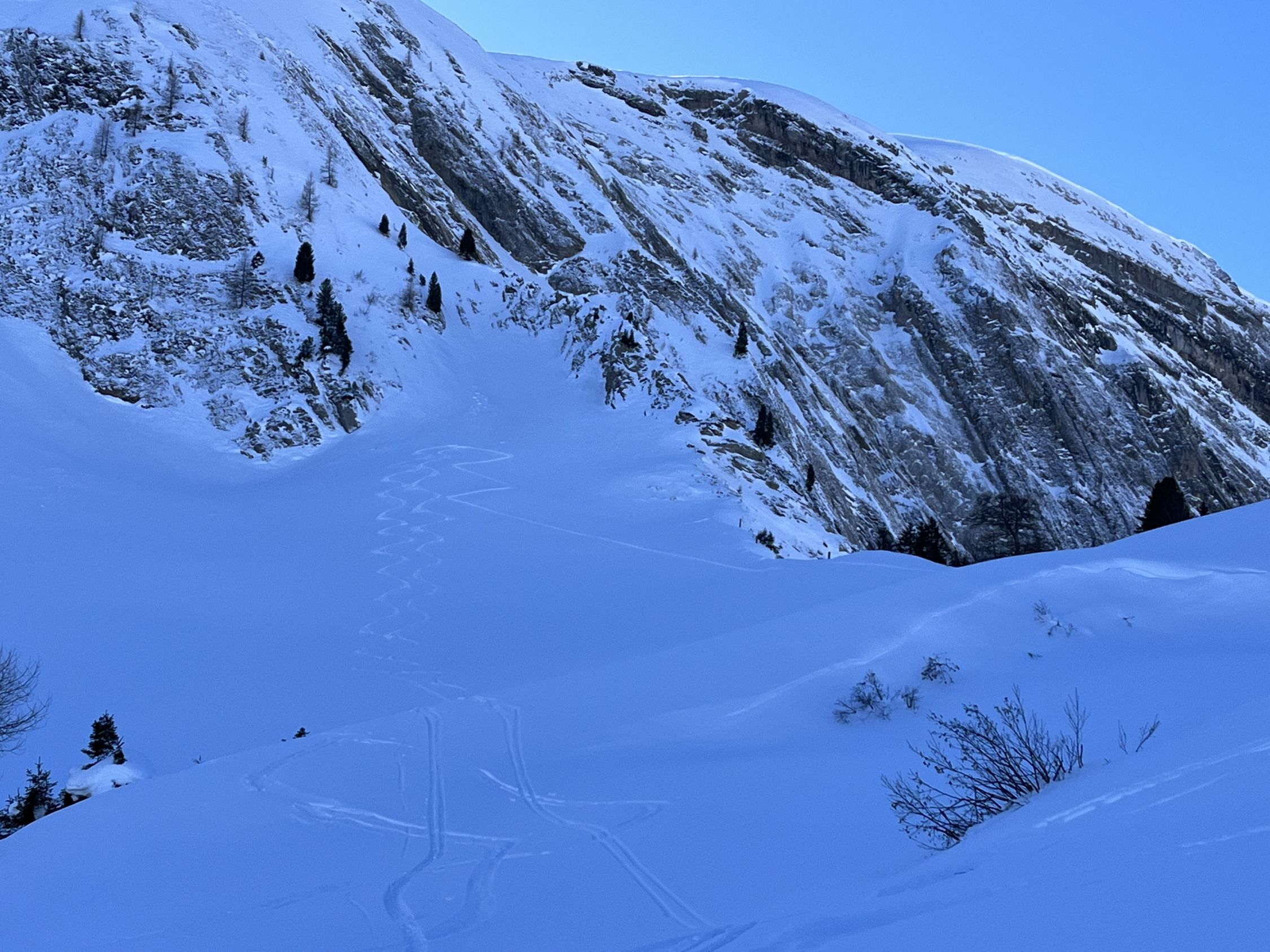 Start in der Hubelmatte. Im Tal Nebel und ca. ab Pörishüttli über dem Nebel in der Sonne. Aufstieg via Hohberg aufs Iffighorn. Matschzeit ca. 2h. Hubelmatte bis Pörishüttli Bruchharsch. Ab Pörishüttli bis Iffighorn Pulver. Es hat am Vortag bis ca. 1600m geregnet. Daher unten Bruchharsch und weiter oben Pulver. Auf dem Hohberg hat es eher wenig Schnee. Wir hatten jedoch kein Steinkontakt. Nach der Abfahrt sind wir noch in den Pörisgrat aufgestiegen. Dieser Zusatzaufstieg hat sich gelohnt. Tolle Abfahrt im Pulverschnee bis zum Pörishüttli.