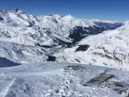 Durchgängig Pulver, ins Tal rein Spuren verblassen, da kräftige bise, Oben dann weniger. Abfahrt: Gipfelhang gut verspurt, danach findet man noch viel freie Fläche. Unten raus auf Steine achten!