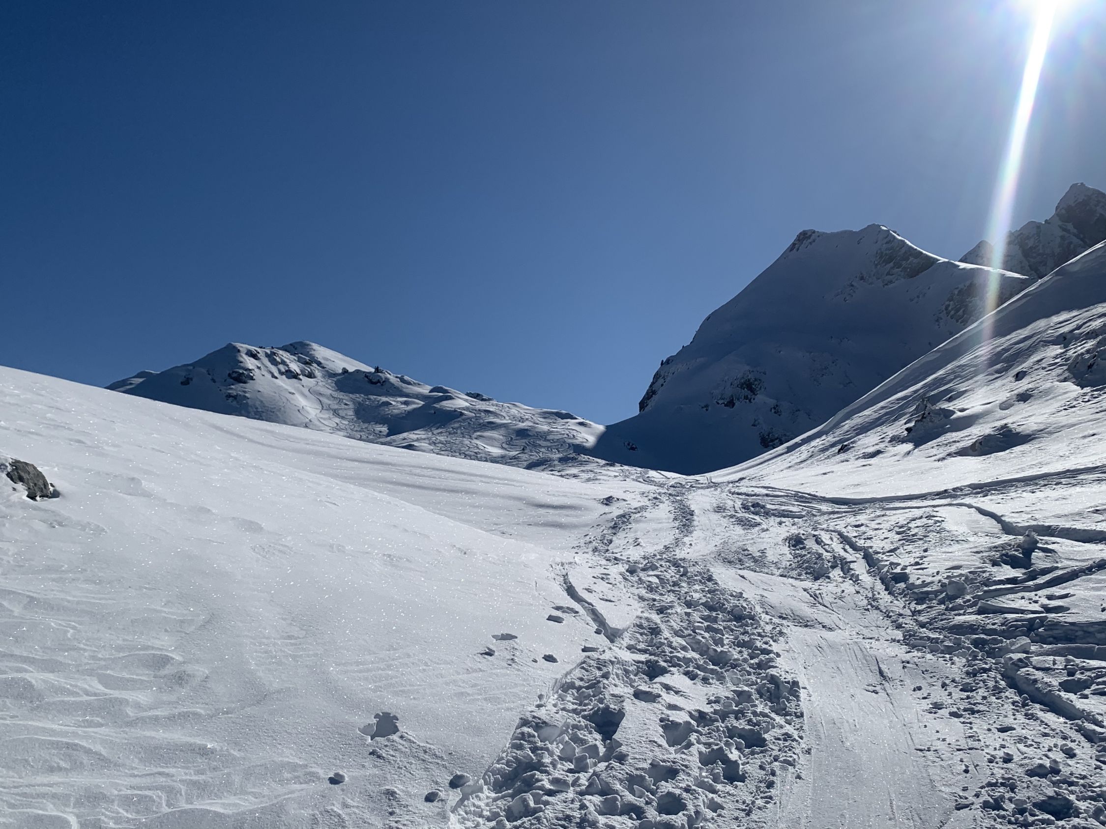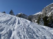 Sehr gute Verhältnisse dank tiefen Temperaturen; danke den Anlegern der Aufstiegsroute ?. Wolkenloser Himmel, Pulverschnee; zt etwas windgepresst. Vorsichtiges abfahren ratsam, da sonst Steinkontakt droht. Unterer Teil Piste durch Würzi; im Moment reicht der Schnee noch.