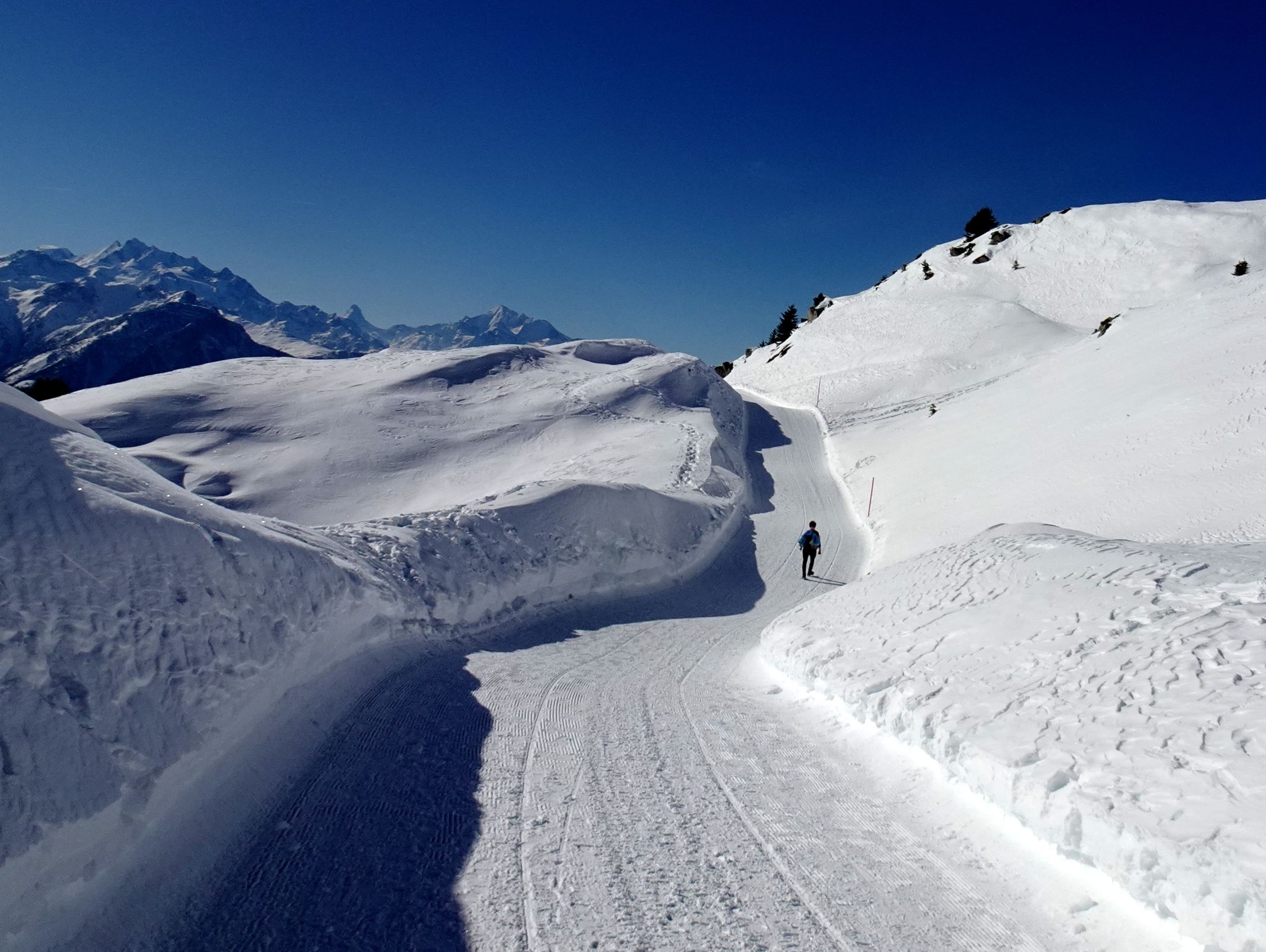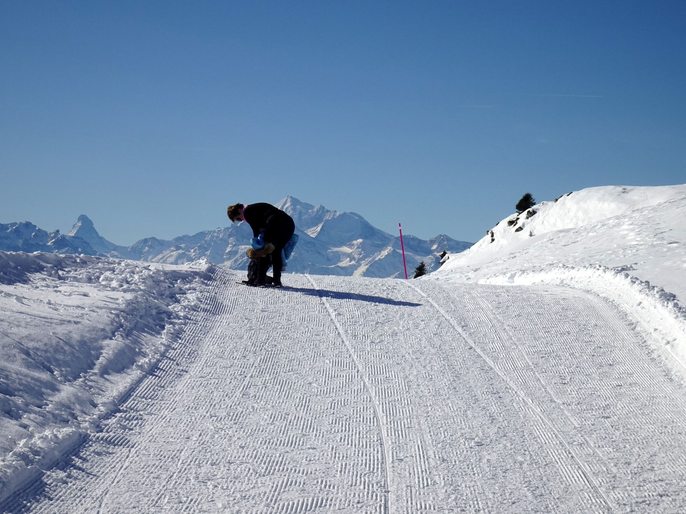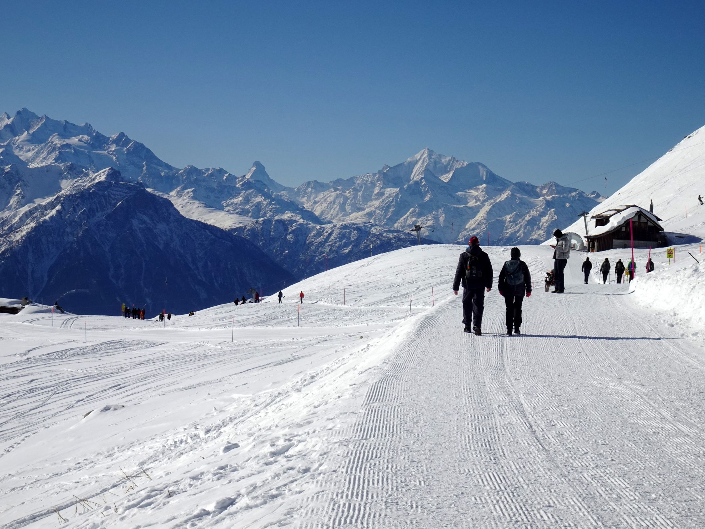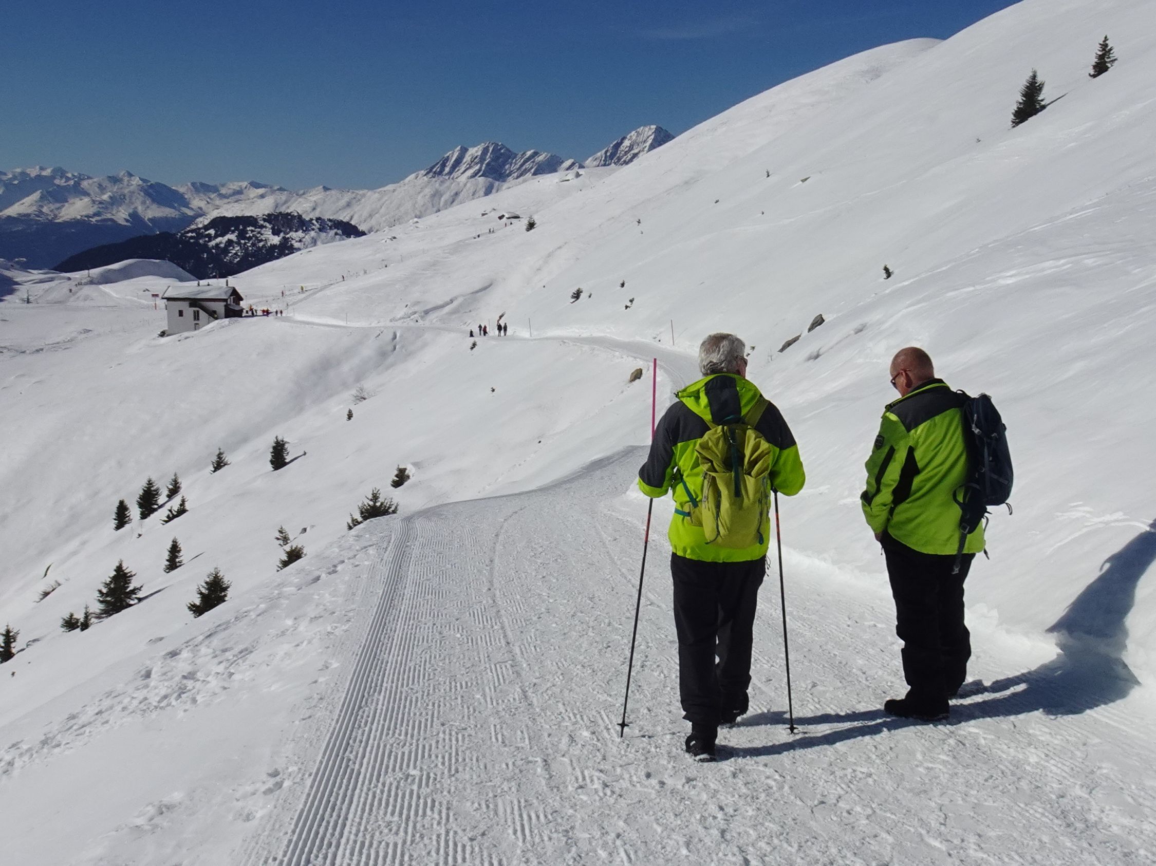 Weg maschinell sehr gut bearbeitet, Die in der steilen Partien zur Bettmeralp hinunter üblichen, glasigen Stelle sind noch nicht vorhanden. Mit Winterschuhen mit gutem Profil geht es sehr gut. Wir hatten die Spikes und Stöcke im Rucksack, mussten Beides nicht benutzen , es ging gut. Sobald es wörmeer wird und der Schnee feucht, friert es in der Nacht, dann sieht die Sache anders aus.