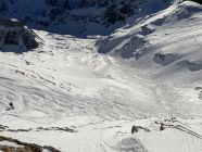 Wer im unteren Teil den Waldweg nimmt, um sich die horizontalen Passagen zu ersparen, muss durch ein paar Lawinenkegel durch, nicht so schön.