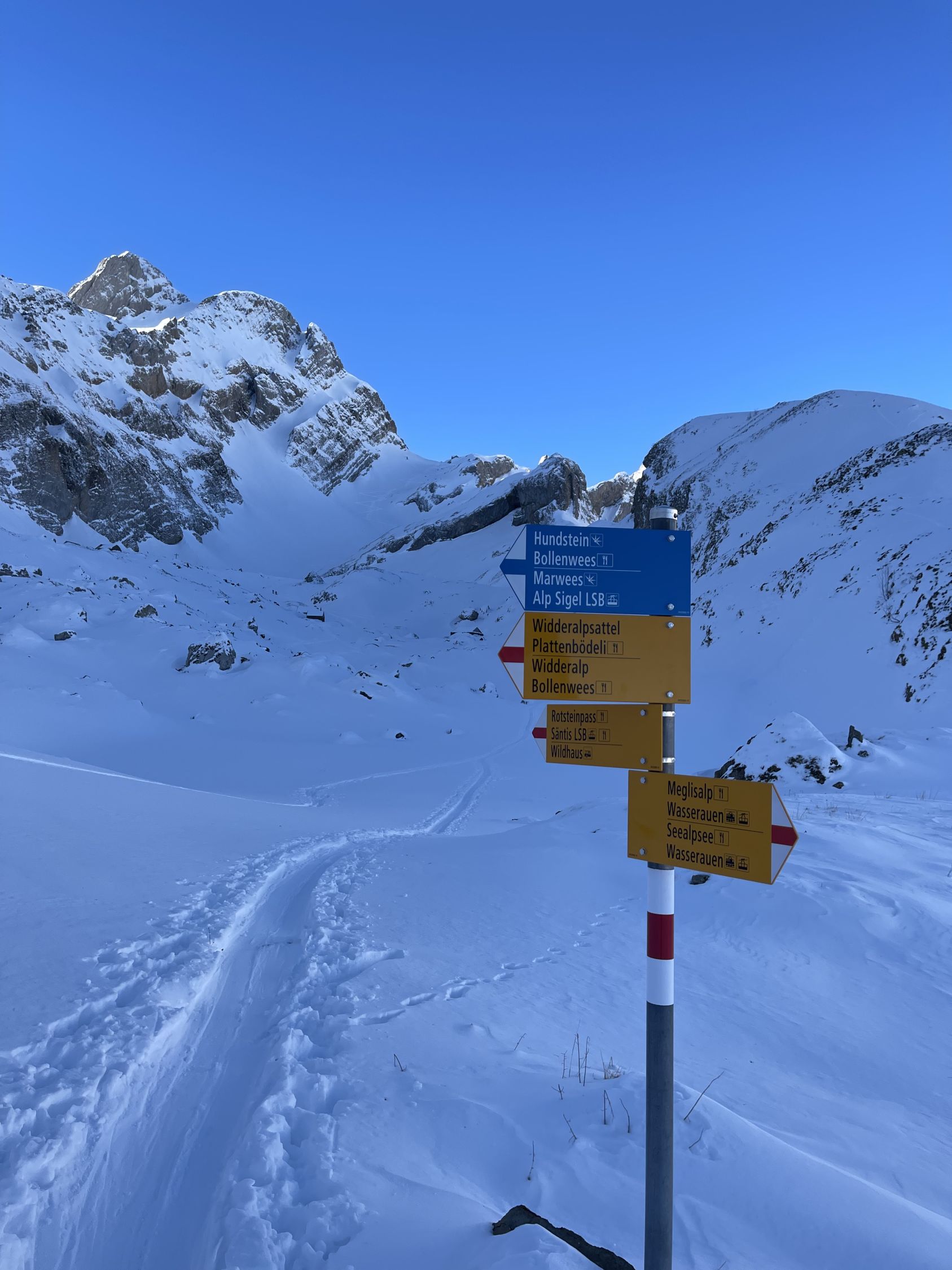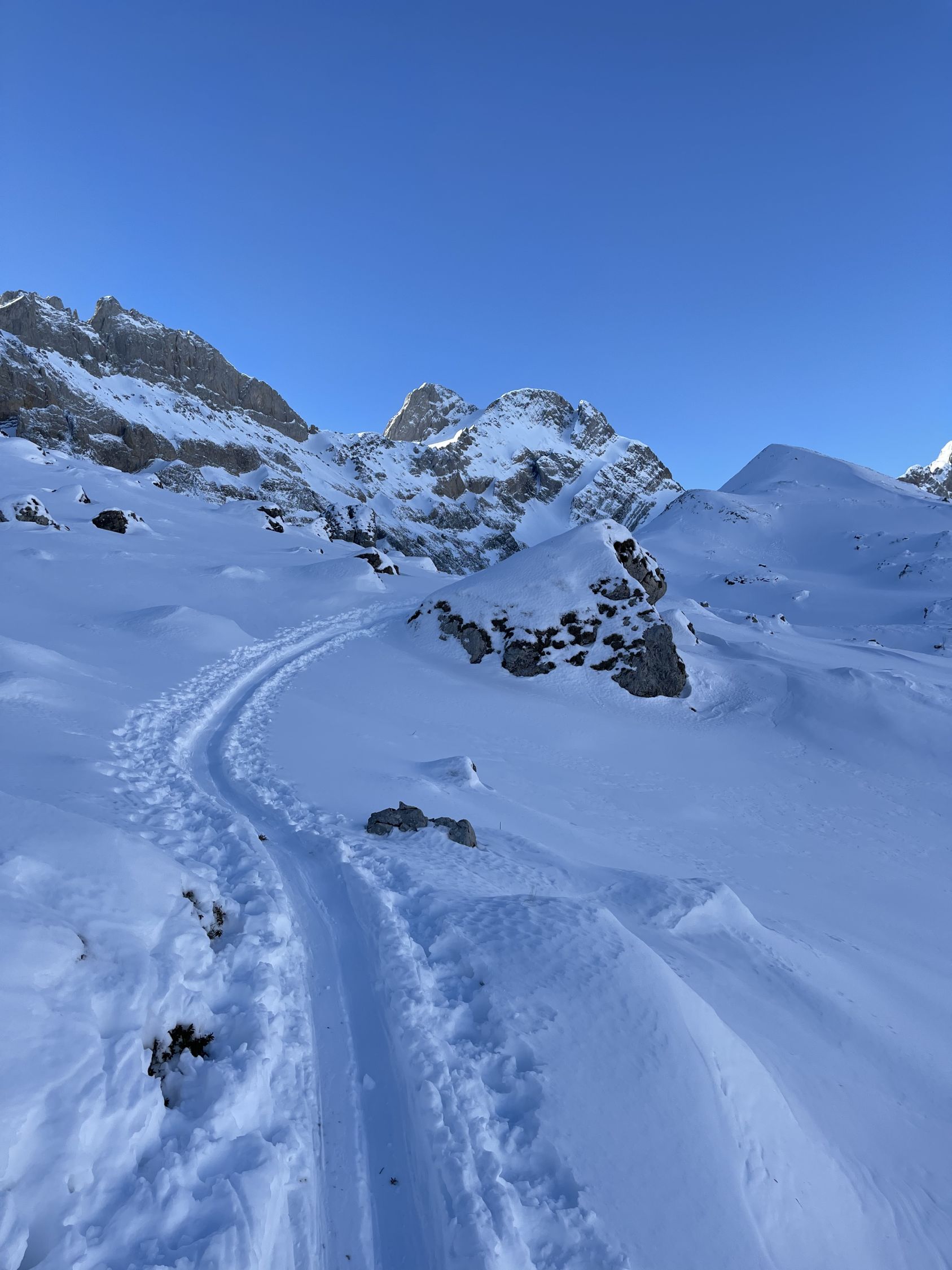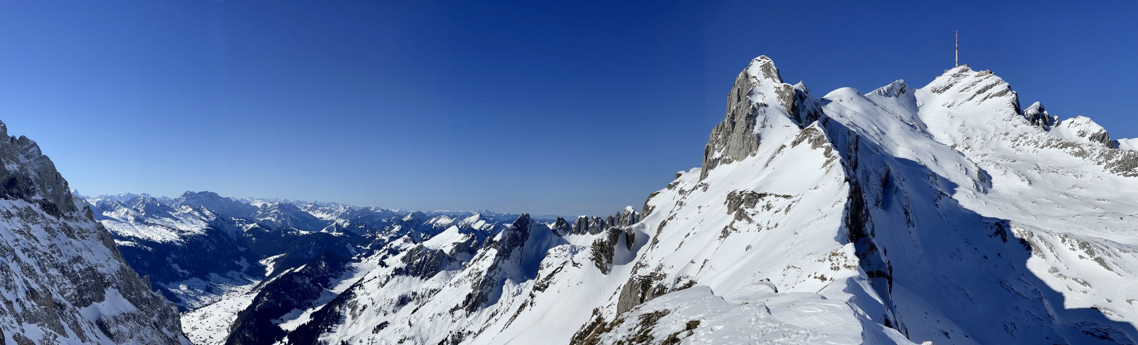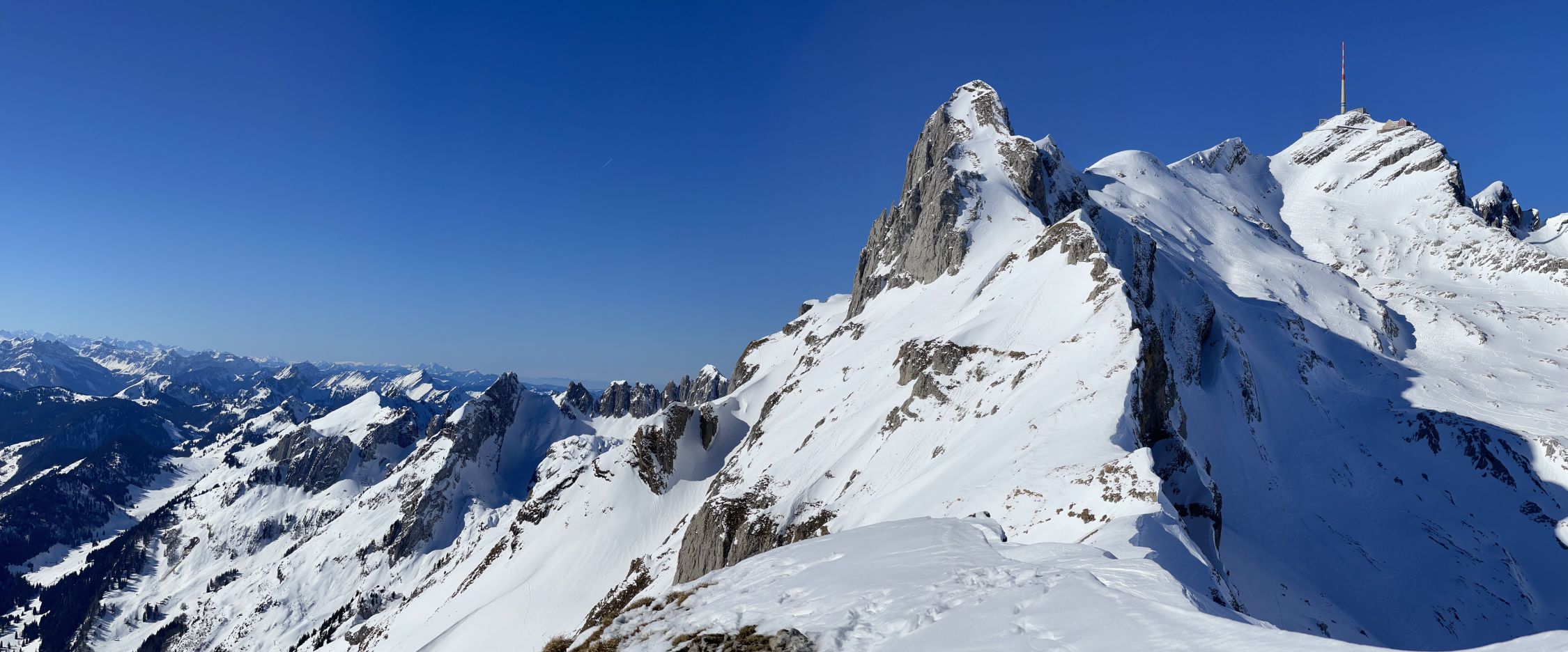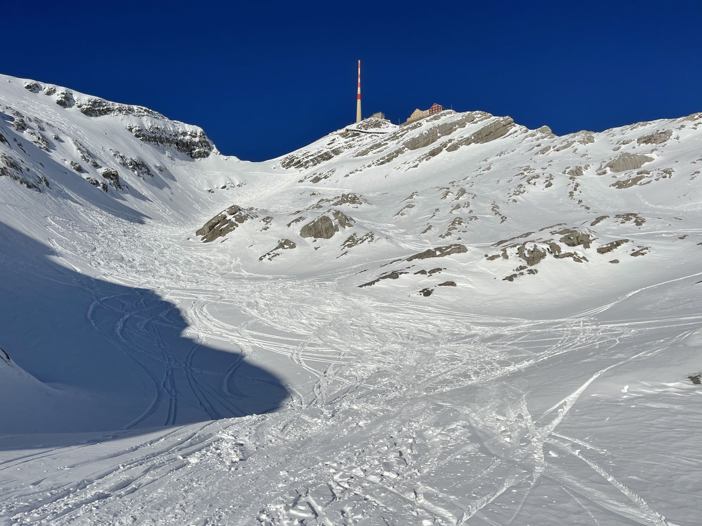 Für ein „ausgezeichnet“ fehlt es ein wenig an Winter/Schnee/Pulver, aber sonst war es absolut schön heute. Die Abfahrt vom Säntis etwas ruppig, der Aufstieg zum Rotsteinpass perfekt, die Abfahrt nach Unterwasser erst mit schönem Pulver, denn mit knusprigem Deckel/Harsch, schließlich cremig aufgesulzt und am Ende schon fast nass - über die Wiesen runter in den Ort ging gerade noch ;-)