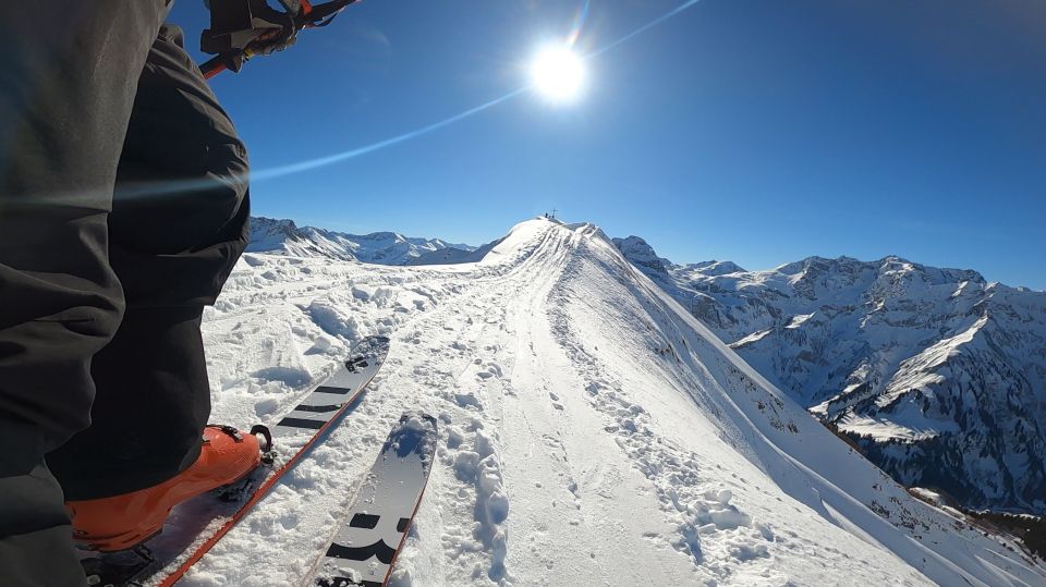 Sehr gute Verhältnisse, die Steilstufen sind trotz unterdurchschnittlicher Schneehöhe problemlos machbar. Der Gipfelhang war traumhaft und noch sehr lohnend. Es gibt auch noch genug Platz für eigene Spuren. Wenn sich die Situation weiter entspannt, gibt es im Kessel noch einiges zu fahren. Heute war noch etwas Zurückhaltung angesagt. Die Zahlreichen Abrisse unter dem Heiterberg weisen auf die angespannte Lage der letzten Tage deutlich hin.