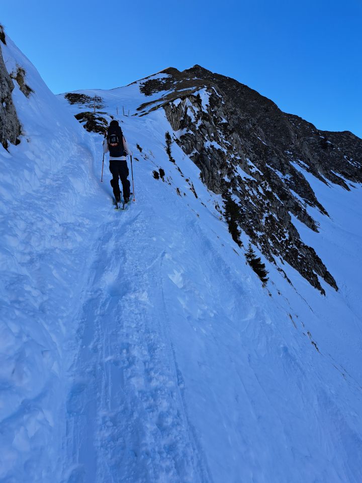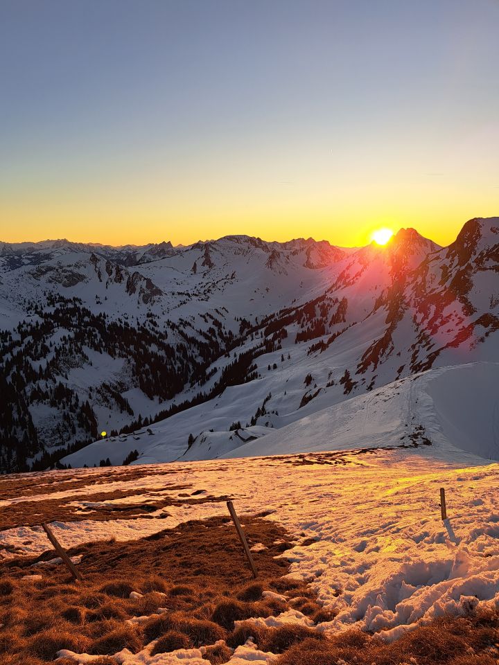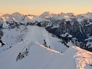 Skitour zu Sonnenuntergang, war traumhaft. Bis zum Morgetenpass gute Spur und genügend Schnee. Von dort bis zum Gipfel hat es bereits lücken, ist noch machbar.