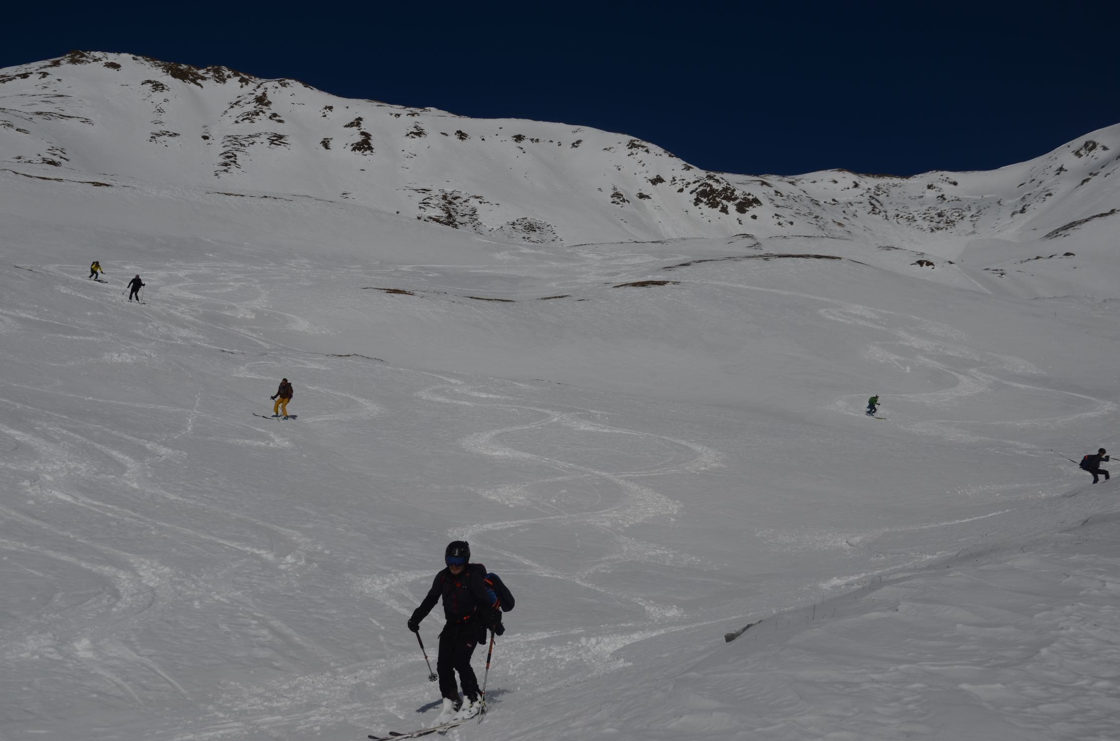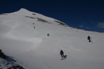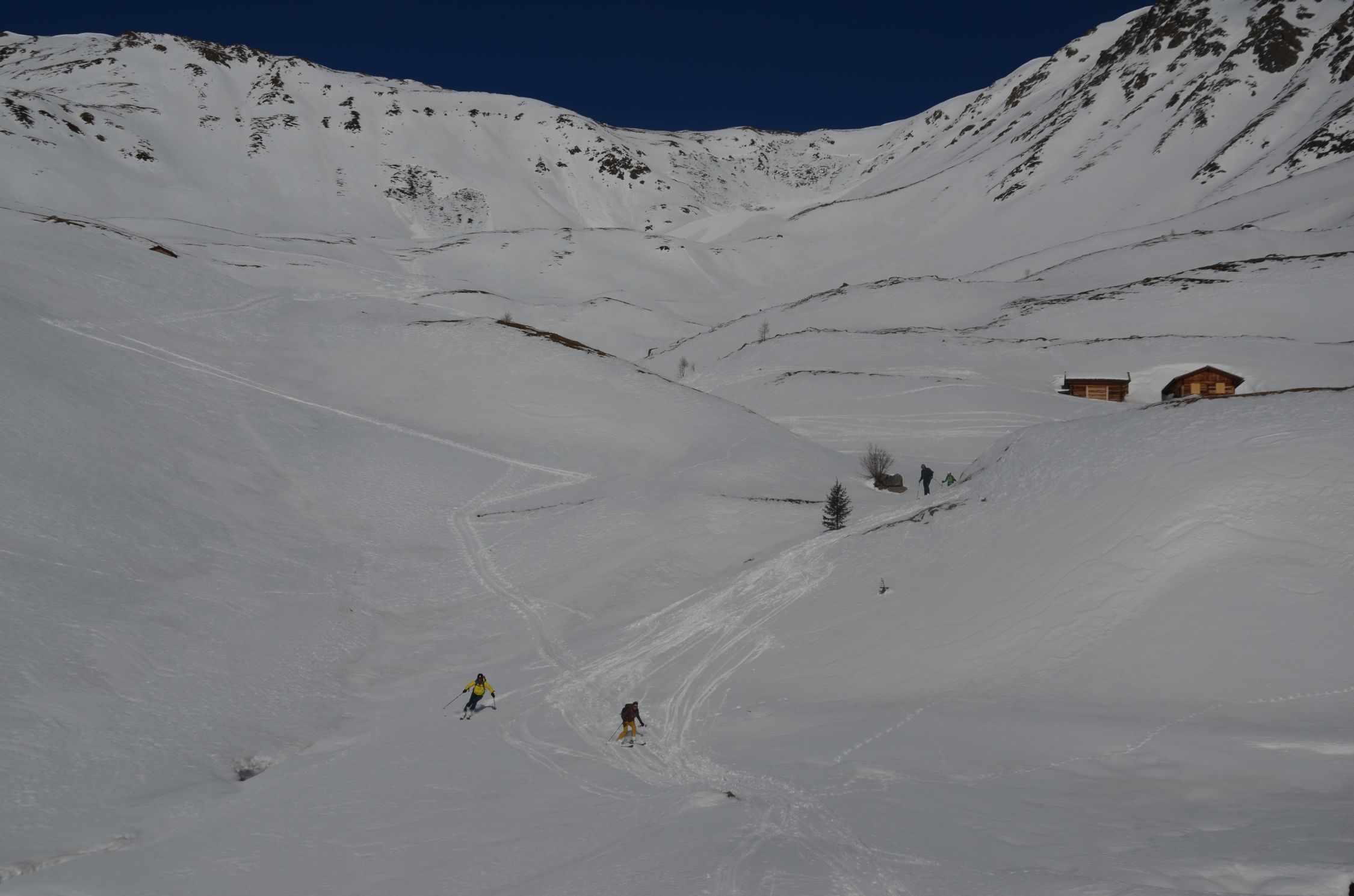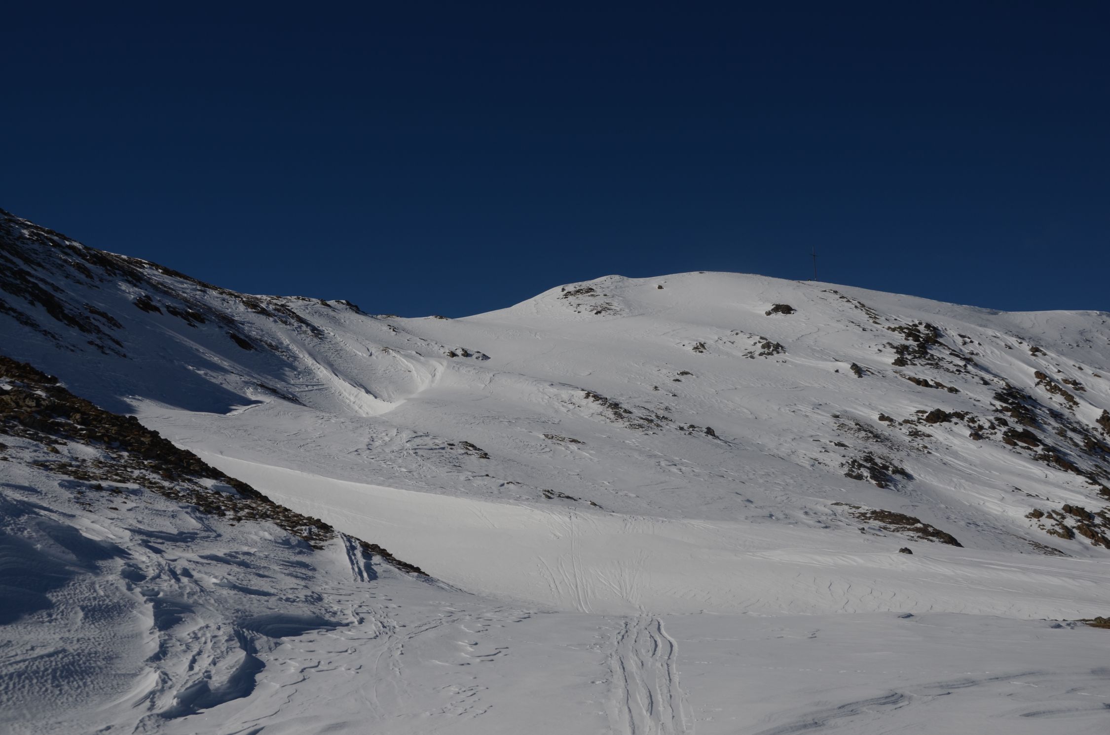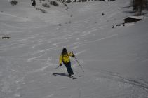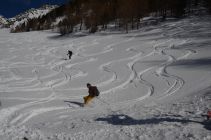Am Gipfelhang hart, aber sehr gut befahrbar. An den Steilhängen Firn und weiter unten etwas angezogener Pulver. Im Waldesnähe die letzten Hänge super leichter Pulver.