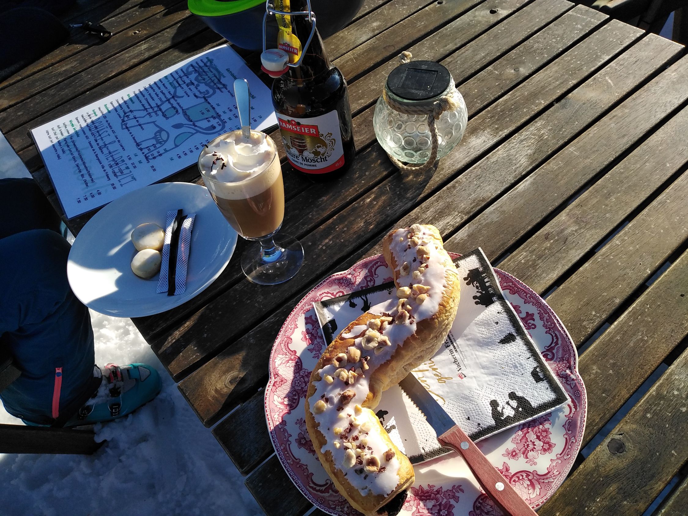 Einkehr im Bergbeizli Gantrischli bei most,Kaffee und Nussgipfel