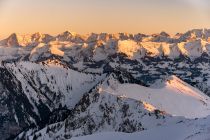 Sonnenuntergangstour bei relativ warmen Temperaturen. Gute Spur bis auf den Morgetepass, ab da reicht der Schnee noch aber bei den warmen Temperaturen wird es sicher einige grössere Lücken geben. Abfahrt etwas unterhalb des Gipfel. Es war alles vorhanden, oben mehrheitlich Pulver mit Deckel und unten hart.